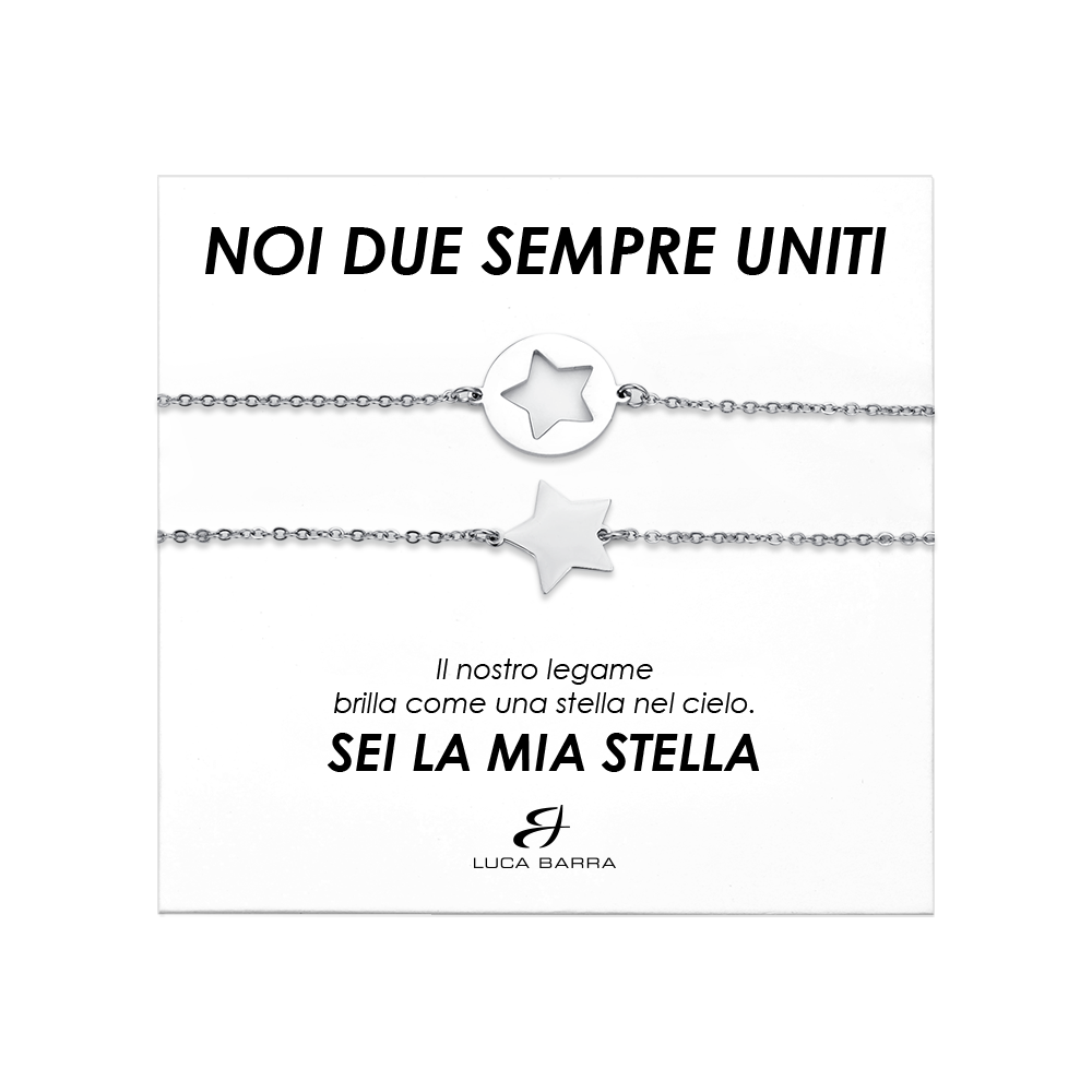 Luca Barra Ladies Steel Bracelets with Stars are elegant accessories that combine contemporary style with a touch of celestial charm. Crafted from high-quality stainless steel, these bracelets offer durability and a polished finish that complements any outfit, whether casual or formal. The design features delicately incorporated star motifs, adding a whimsical and trendy element that appeals to women who appreciate both modern fashion and subtle symbolism. Lightweight and comfortable to wear, Luca Barra’s steel bracelets are perfect for everyday use or special occasions, making them a versatile addition to any jewelry collection. With their blend of sleek metal and starry accents, these bracelets effortlessly elevate personal style while expressing individuality and a sense of wonder.