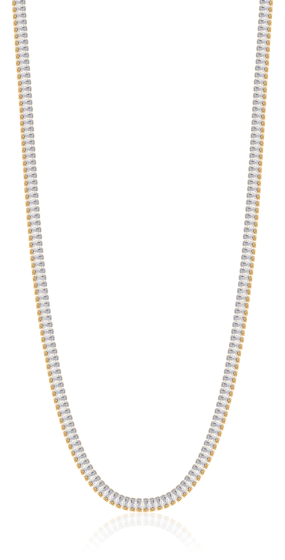 • Features a delicate chain adorned with meticulously set white baguette crystals.