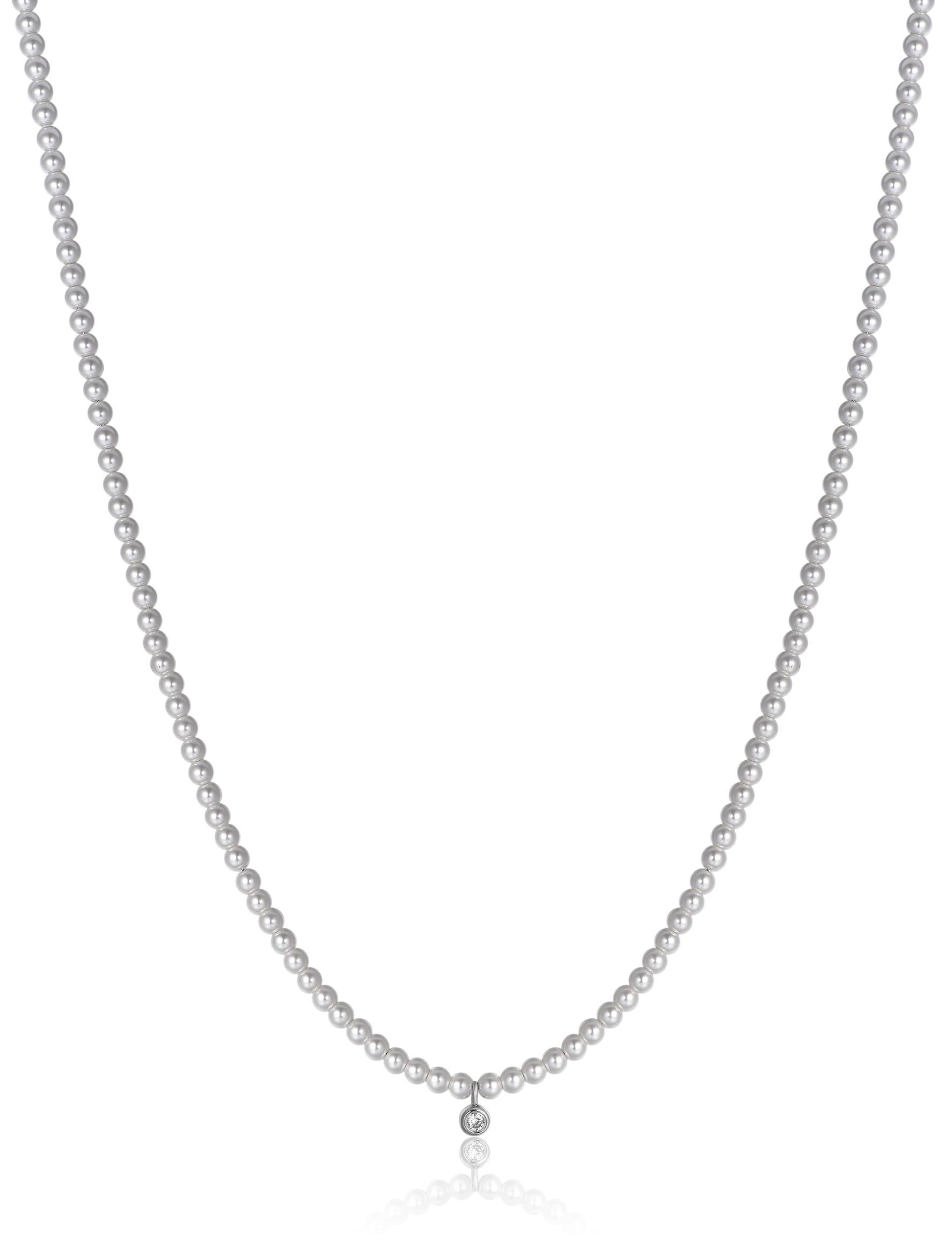 Luca Barra Ladies Necklace in Steel with Pearls with White Crystal