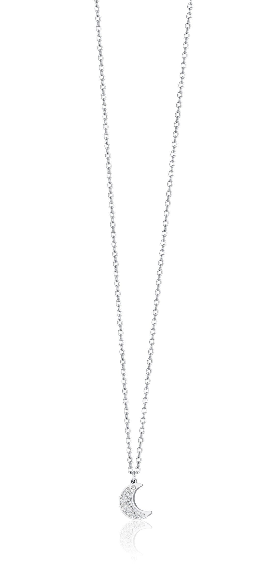 Luca Barra Ladies Necklace in Steel with Moon and Crystals