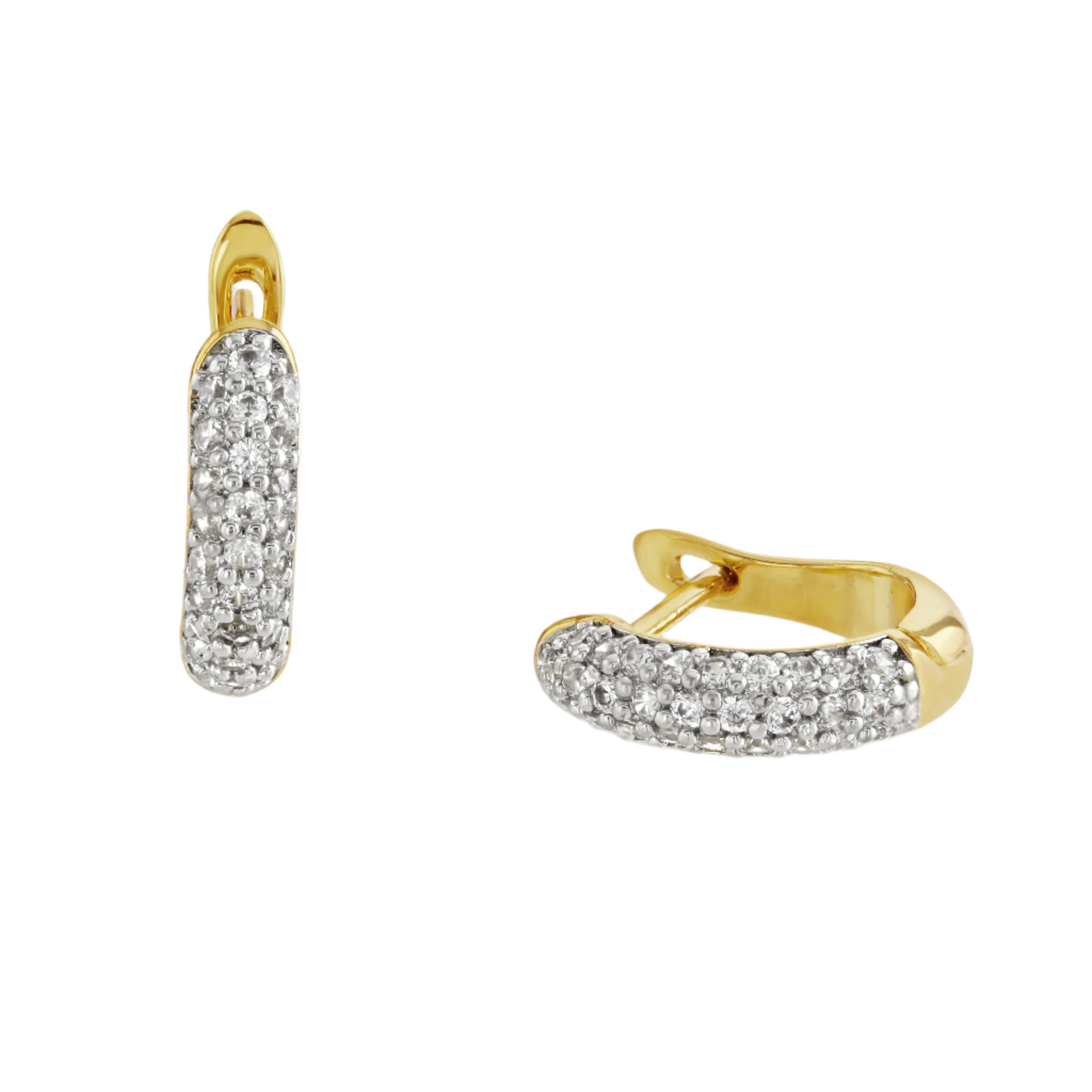 Elevate your style with the Two-Tone Cluster Hoop Earrings. These exquisite earrings boast a latch back adorned with a cubic zirconia cluster hoop. The design seamlessly transitions into a sleek polished band, offering a perfect blend of sophistication and charm. Make a statement with these elegant and versatile earrings.