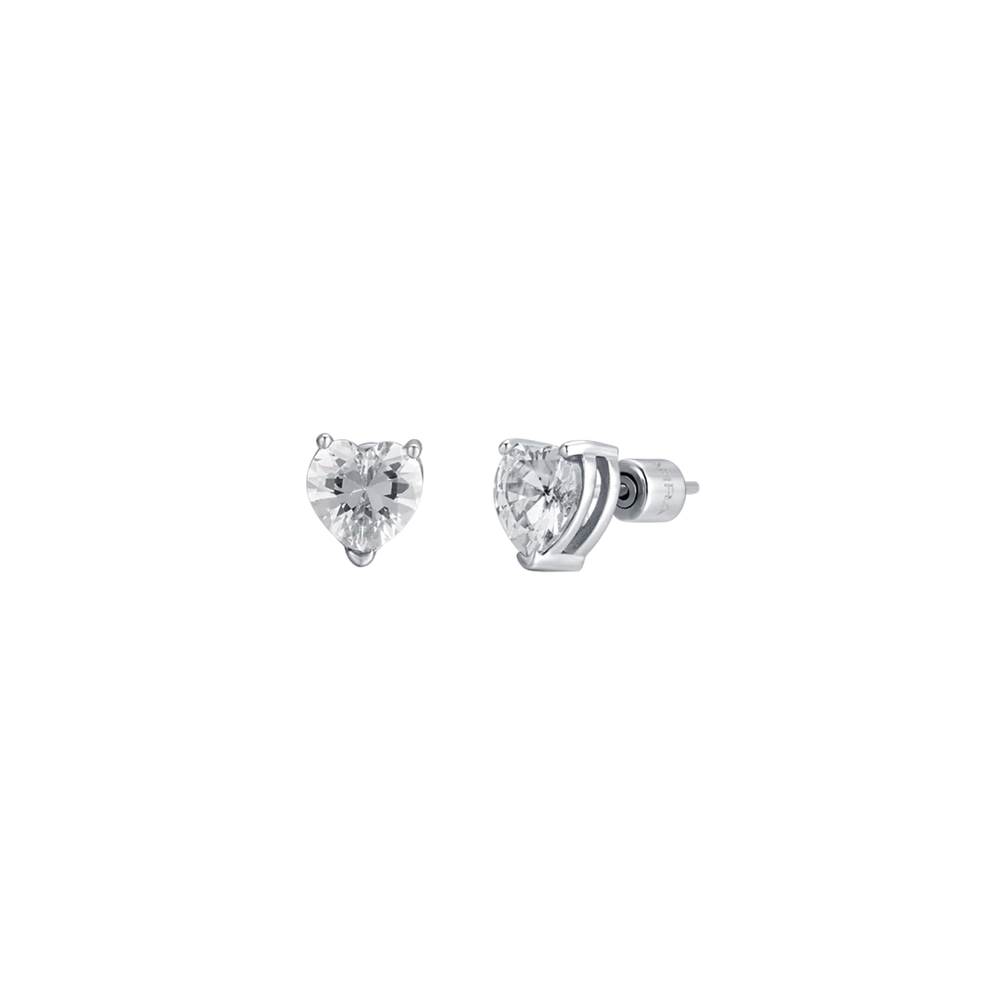 Luca Barra Ladies Steel Earrings with White Heart-Shaped Crystals