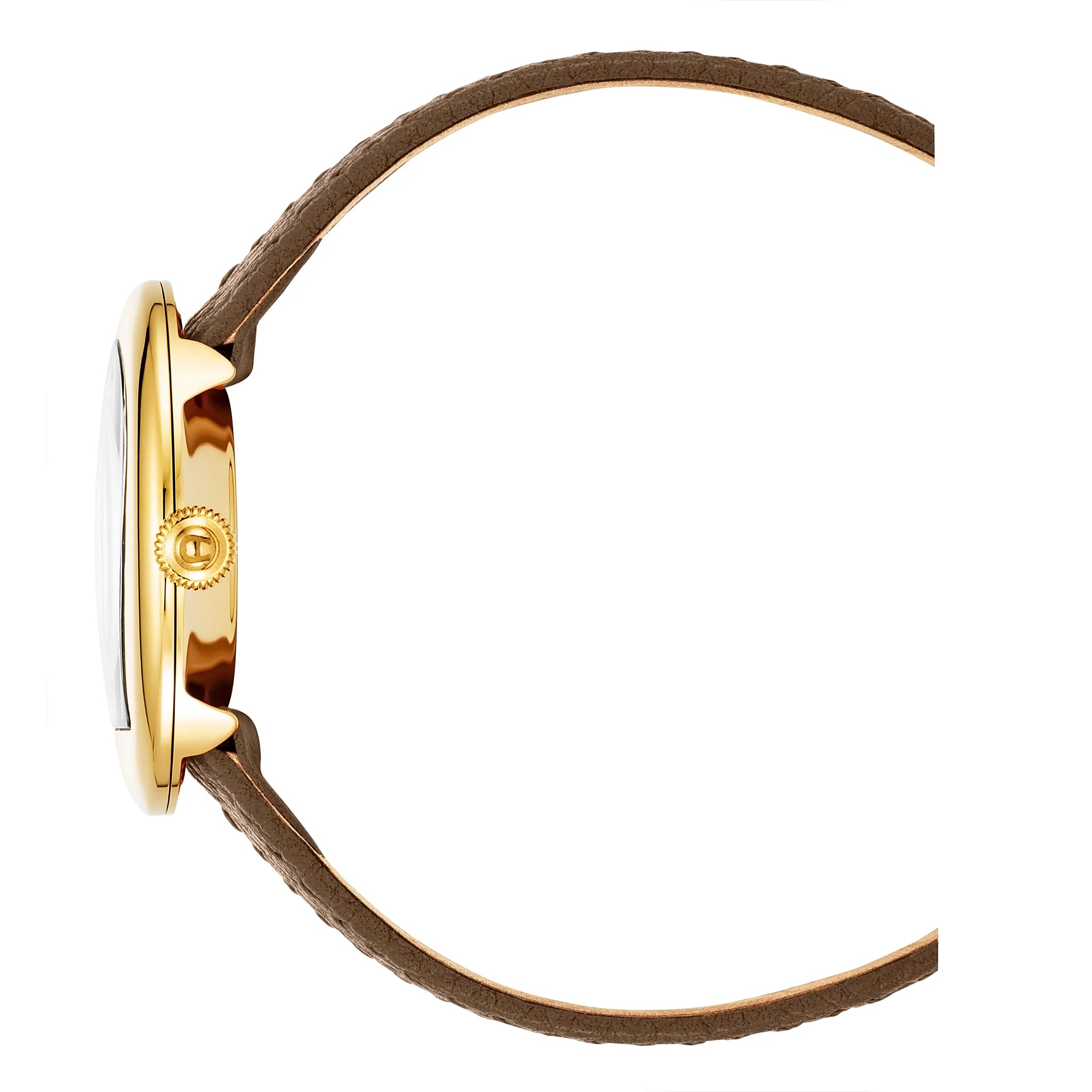 The Aigner Biella Ladies Gold Dial Brown Leather Strap Watch is a luxurious timepiece featuring a stunning gold-plated stainless steel case. With a case size of 39 x 46 mm, it is the perfect size for a statement piece without being too heavy or bulky on the wrist. The watch is equipped with a Swiss precision movement Ronda 762E, ensuring accurate timekeeping at all times. The white dial adds a touch of elegance to the watch, making it suitable for both formal and casual occasions. The leather strap is crafted in a rich brown color, adding warmth and sophistication to the overall design. The leather is soft and comfortable to wear, making it a great everyday watch. The Aigner Biella watch has a water resistance of 3 ATM, which means it can withstand splashes of water, making it suitable for daily wear. This watch is an analogue battery-operated timepiece, which will need to be replaced periodically. The Aigner Biella Ladies Gold Dial Brown Leather Strap Watch is a stunning timepiece that combines elegance and functionality. It is a great choice for women looking for a high-quality, stylish watch.