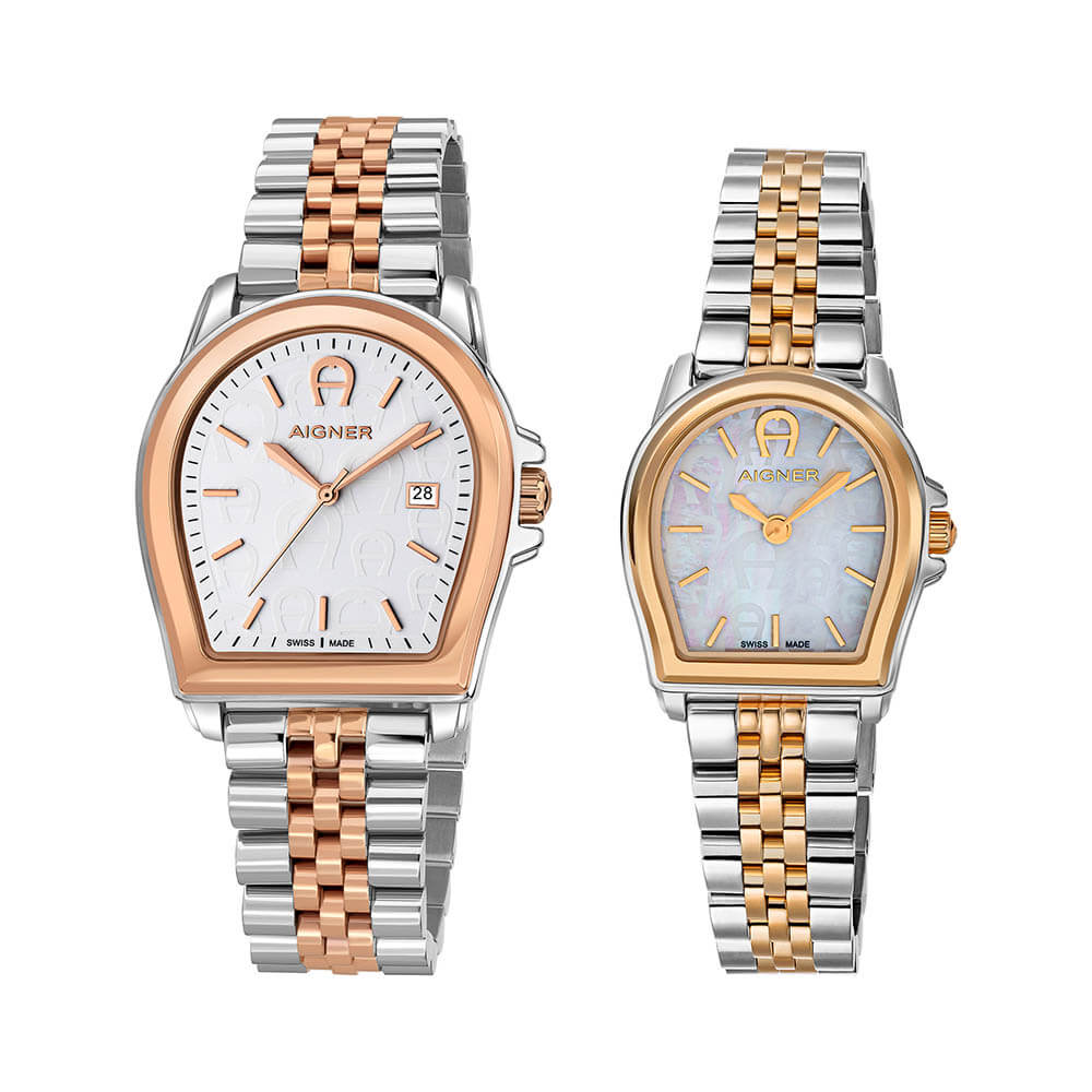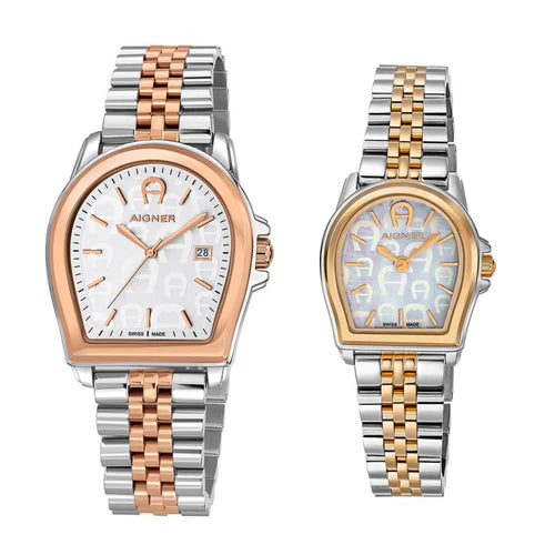 Aigner Verona His & Her Stainless Steel Rose Gold Pair Watch Set