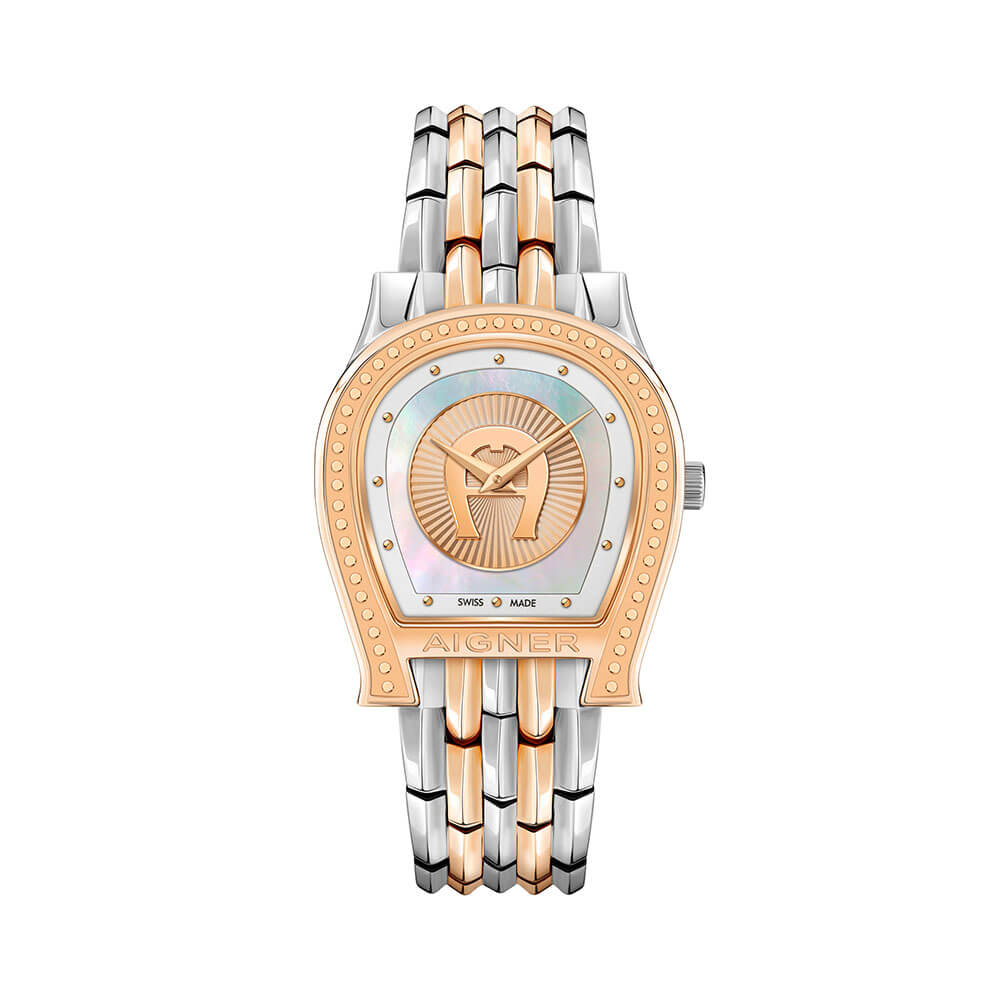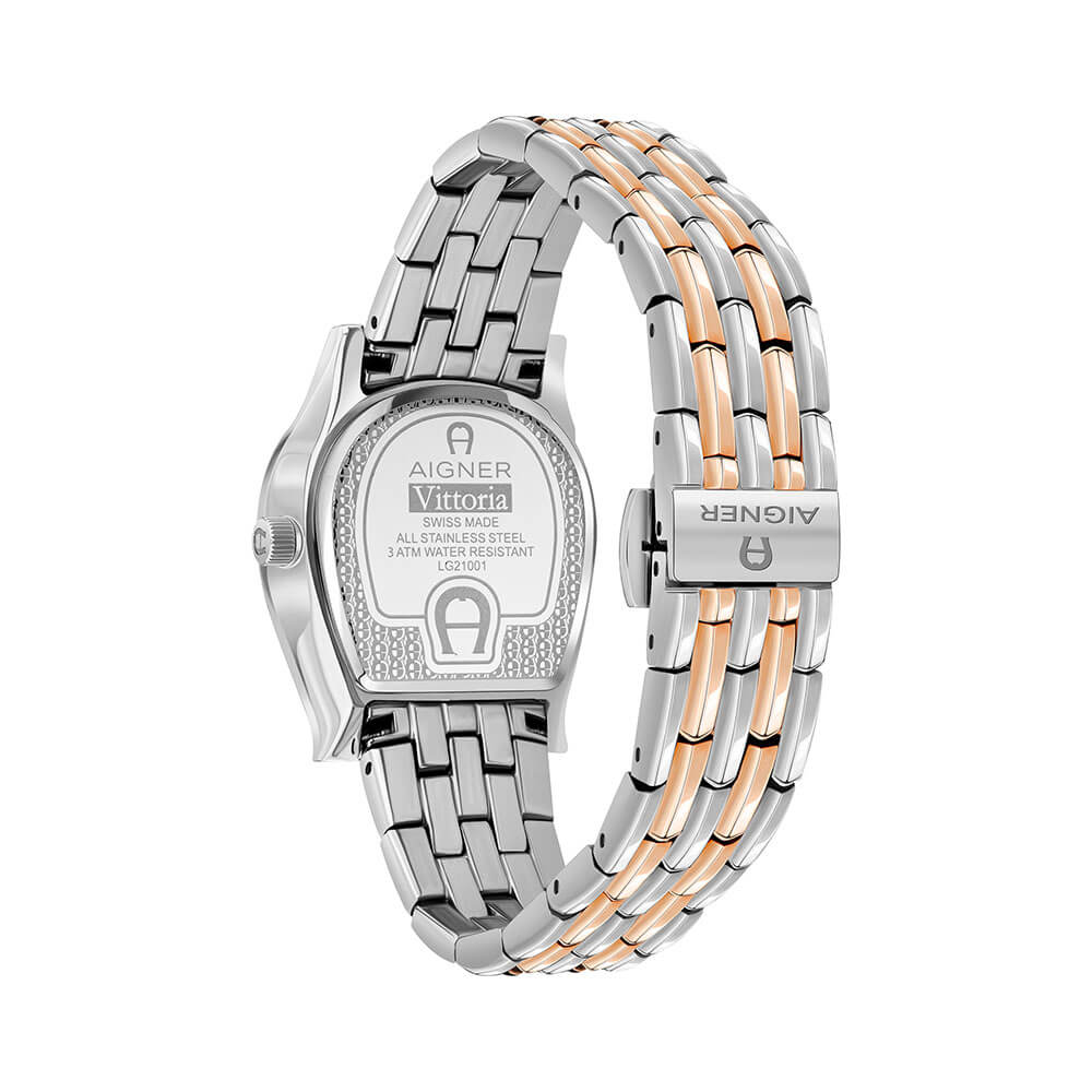 Aigner Vittoria Women's Stainless Steel Rose Gold Plated and White MOP Dial with Metal Bracelet Strap Watch