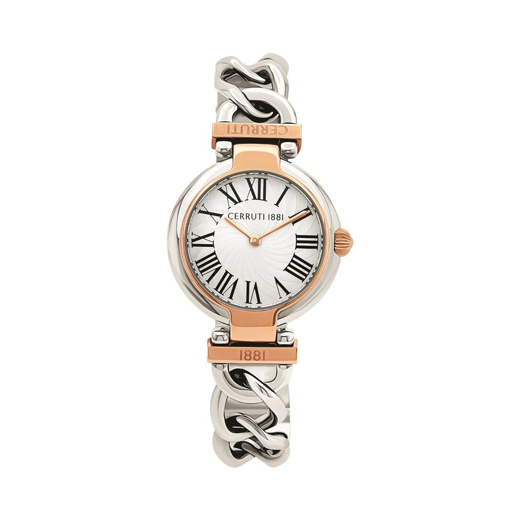 ساعة شيروتي نسائية ذات هيكل من الستانلس ستيل بلون ذهبي وردي مع مينا بيضاء وسوار معدني بلون ذهبي وردي