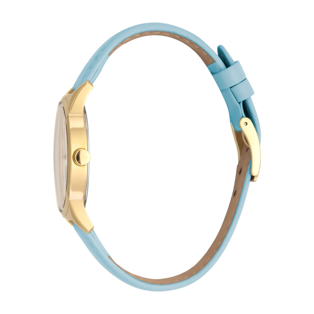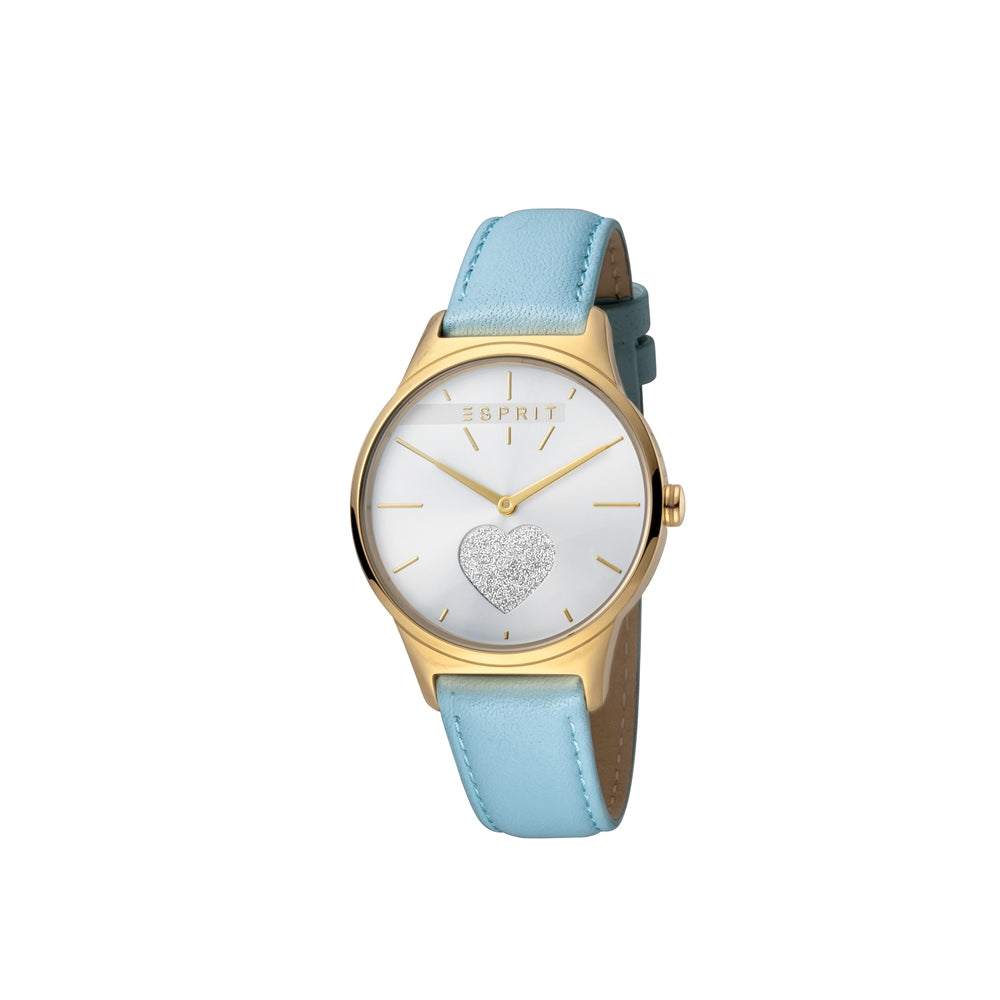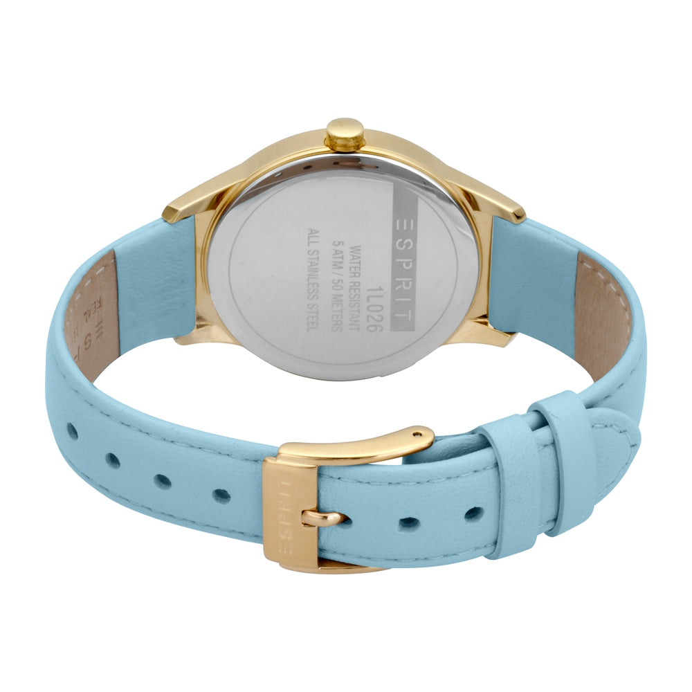 ساعة إسبري نسائي مطلي بالذهبي مع ميناء بيضاء و حزام أزرق من الجلد