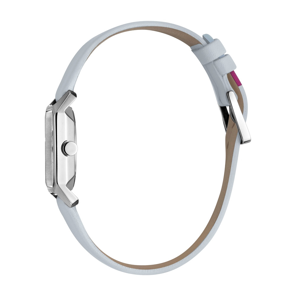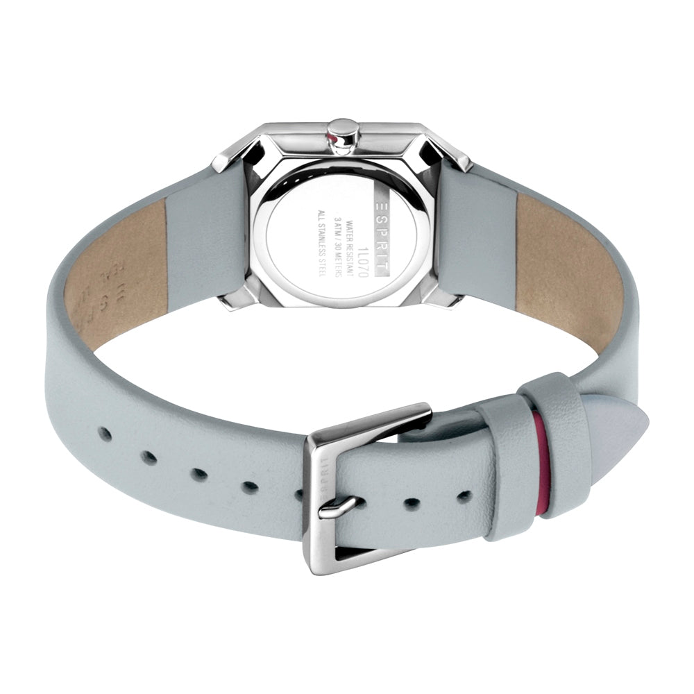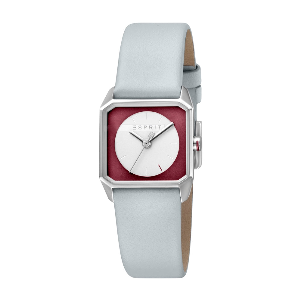ساعة إسبري نسائي من الستانلس الستيل مع ميناء بلونين و حزام جلدي باللون الأزرق الخفيف