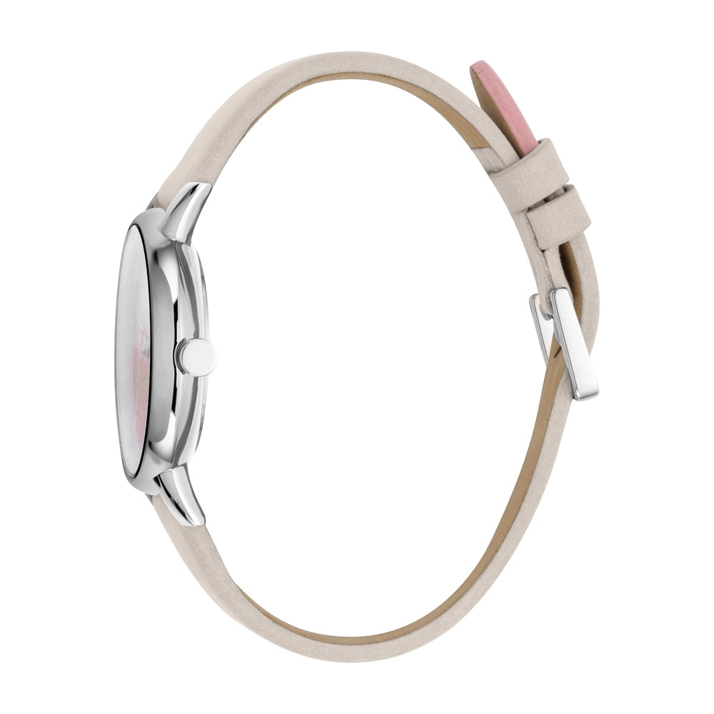 ساعة إسبري نسائي من الستانلس الستيل مع ميناء متعدد الألوان و حزام جلدي باللون البيج