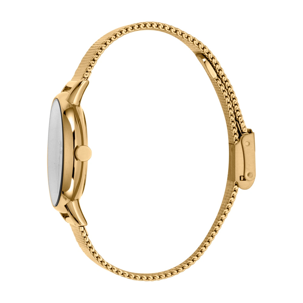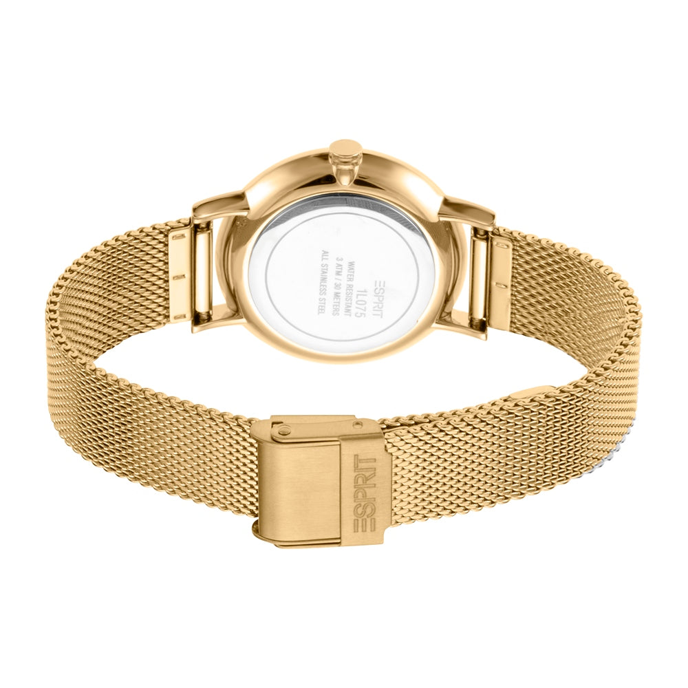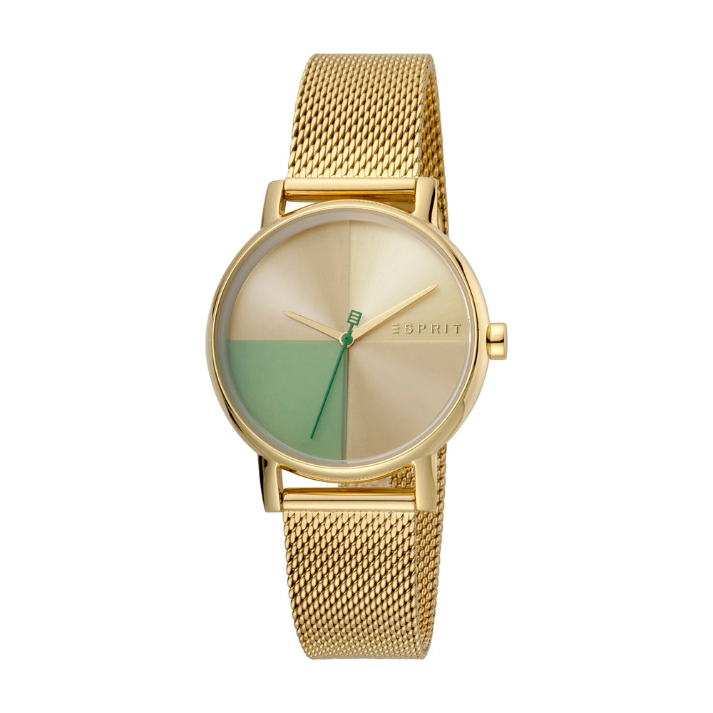 ساعة إسبري نسائي من الستانلس الستيل مطلي بالذهبي مع ميناء متعدد الألوان و سوار شبكي