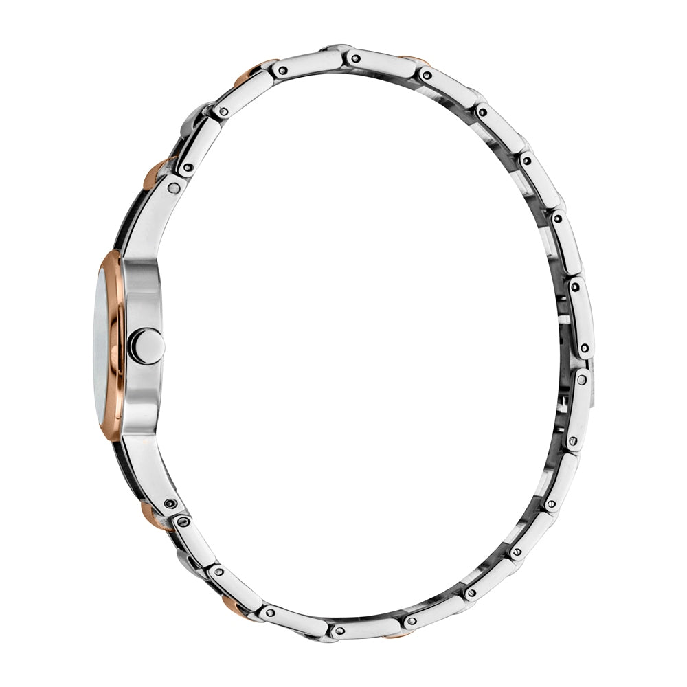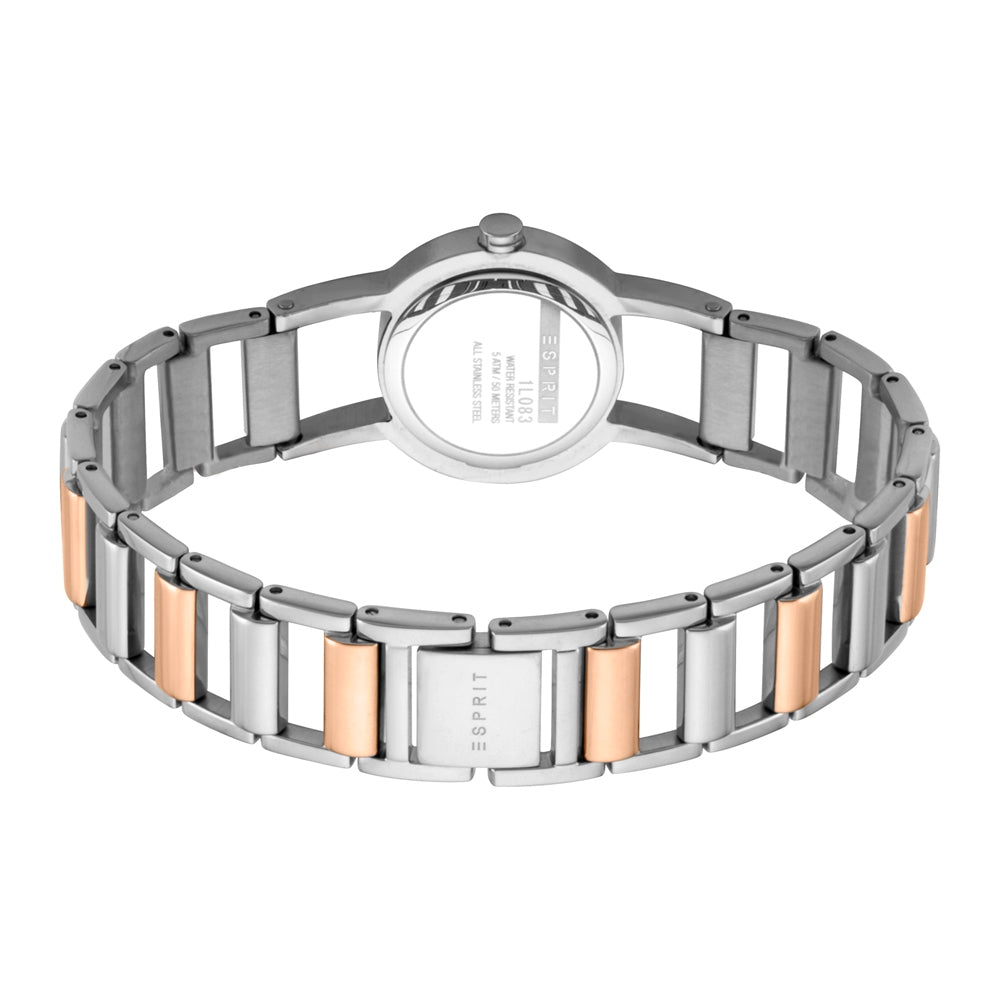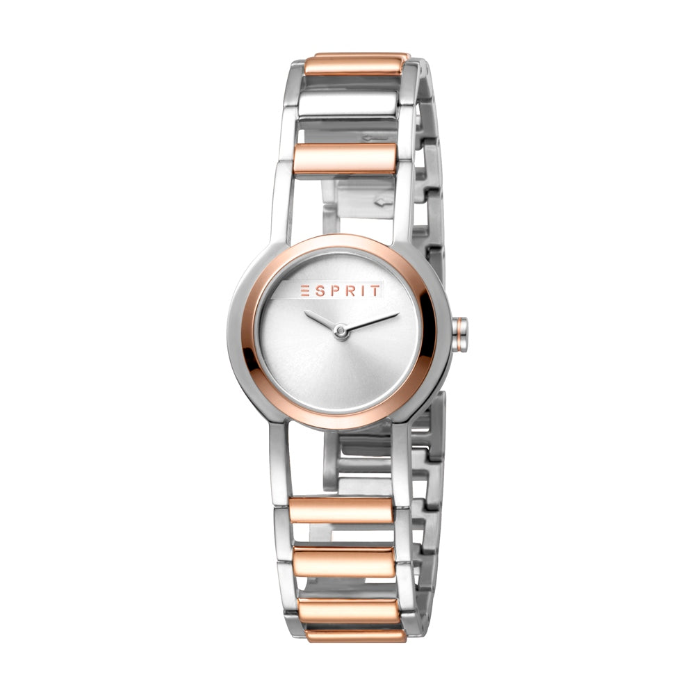 ساعة إسبري نسائي بلونين من الستانلس الستيل مع ميناء فضية و سوار معدني بألوان ثنائية
