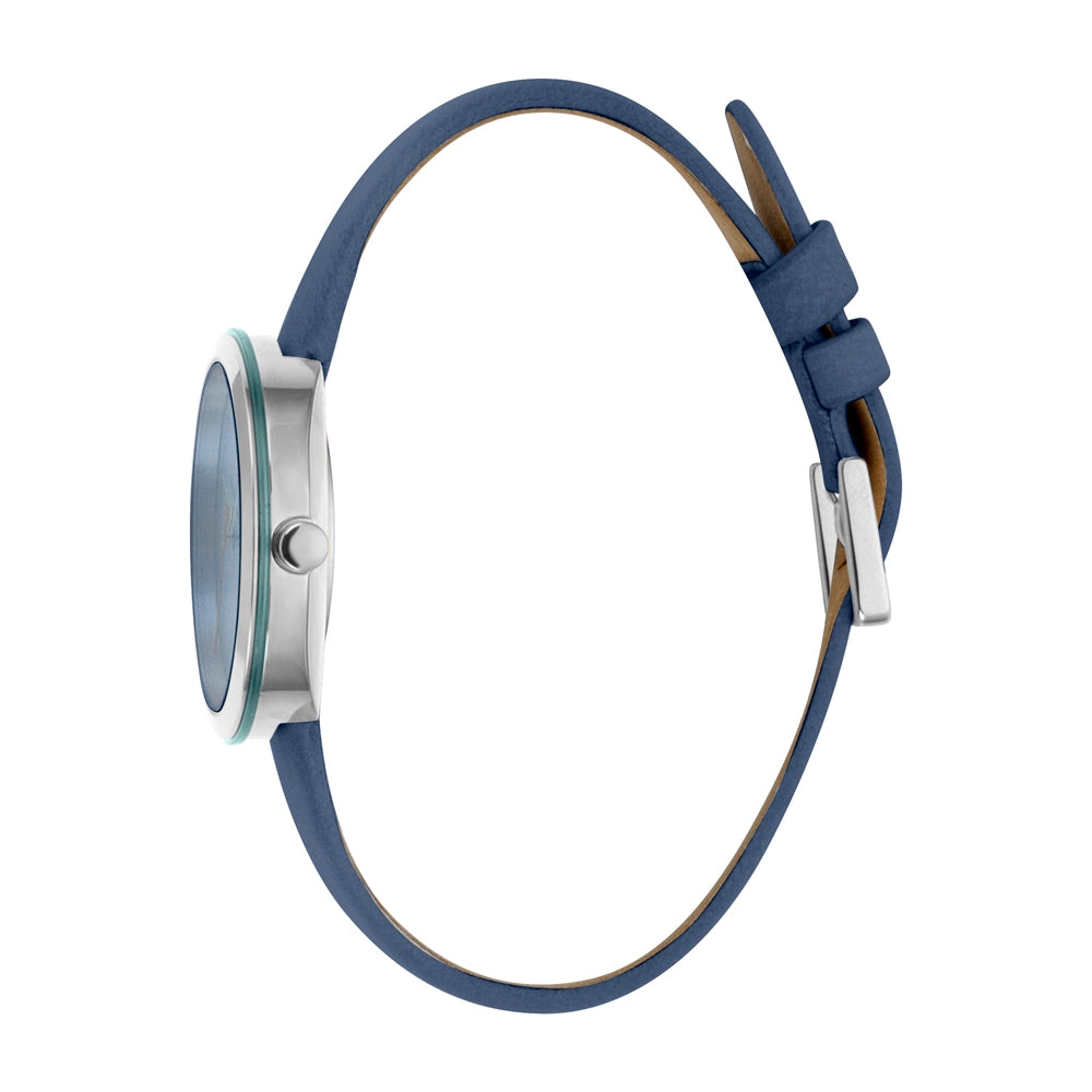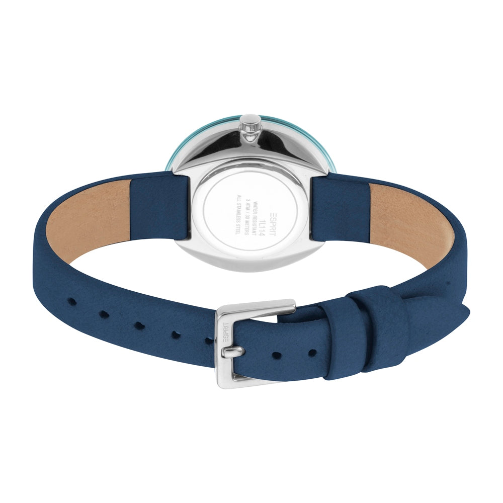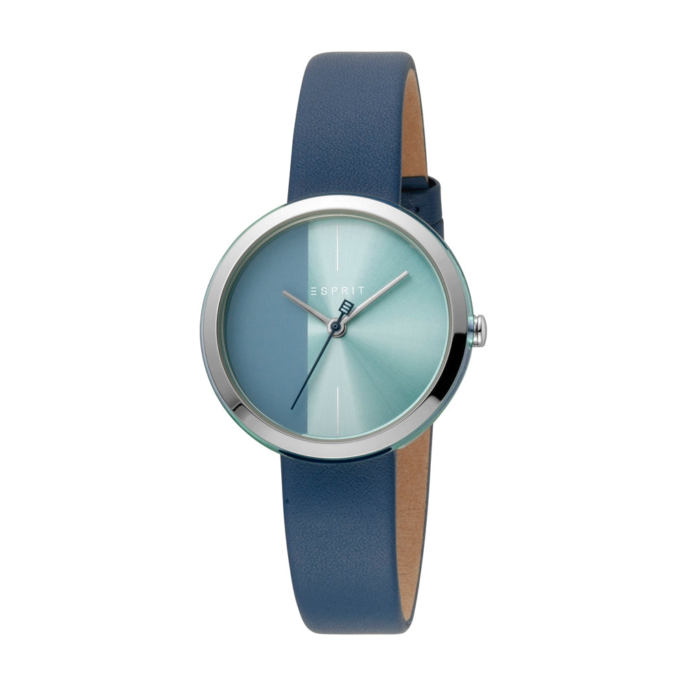 ساعة إسبري نسائي من الستانلس الستيل مع ميناء بلونين و حزام أزرق من الجلد