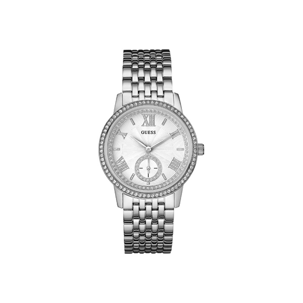 ساعة جيس نسائية من الستانلس ستيل مع ميناء فضية و سوار معدني