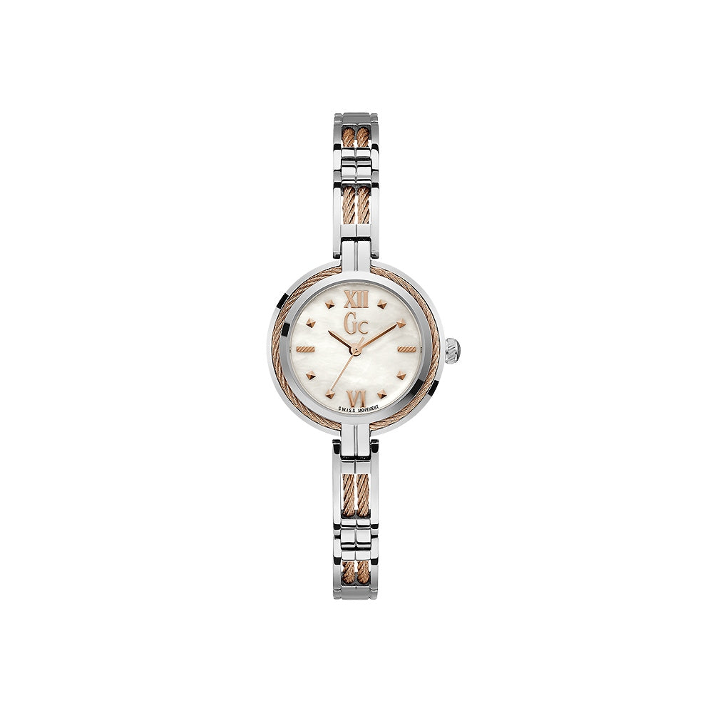 ساعة جي سي نسائية من الستانلس ستيل مع ميناء لؤلؤية و سوار معدني