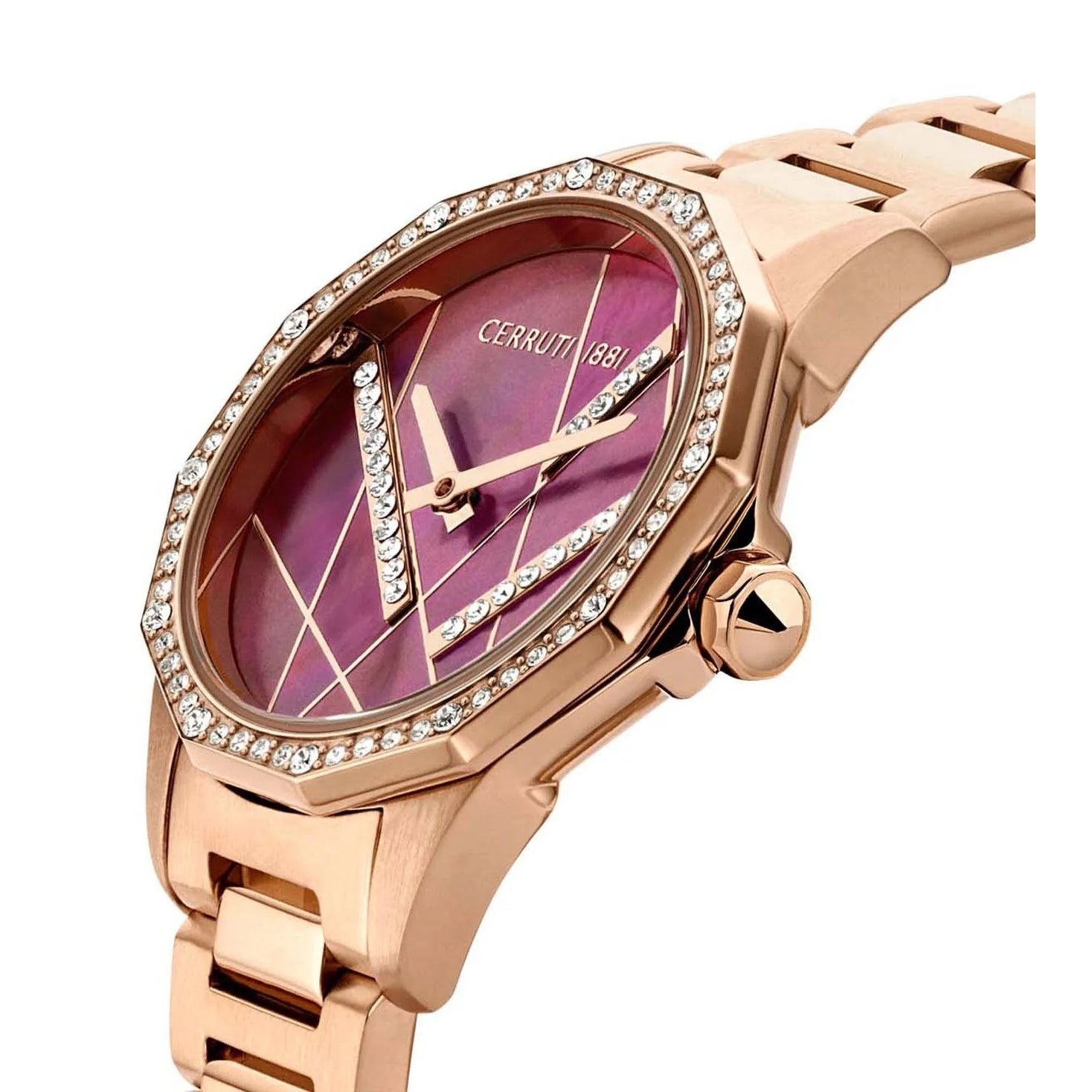 Cerruti Jesina Ladies Purple Puzzle Dial Rose Gold Watch