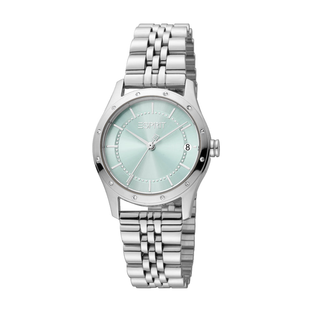 ESPRIT Women's Silver Color Watch with Light Blue Dial and Date Function