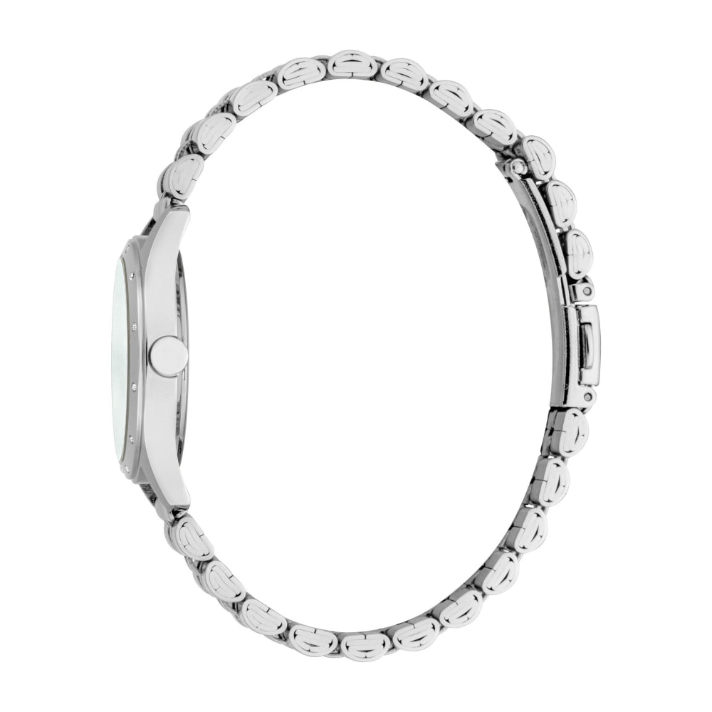| The ESPRIT Women's Silver Color Watch is a timeless and elegant timepiece that will add a touch of sophistication to any outfit. With its Silver Color case and stainless steel bracelet, the watch is both fashionable and functional. The Light blue dial is accented with three hands and hour markers in a silver-tone finish, providing easy readability and a beautiful design to the overall design. This watch is powered by a reliable quartz movement and boasts water resistance up to 5 ATM, making it suitable for swimming and snorkeling. The stainless steel bracelet is comfortable to wear and features a secure fold-over clasp. Whether you're dressing up or down, this ESPRIT Women's Watch is the perfect accessory. Add this timeless timepiece to your wardrobe and wear it with confidence. SPECIFICATIONS: