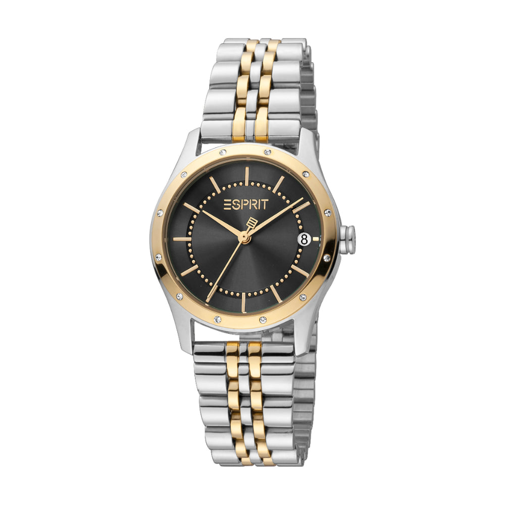 ESPRIT Women's Two Tone Silver & Gold Color Watch with Black Dial and Date Function