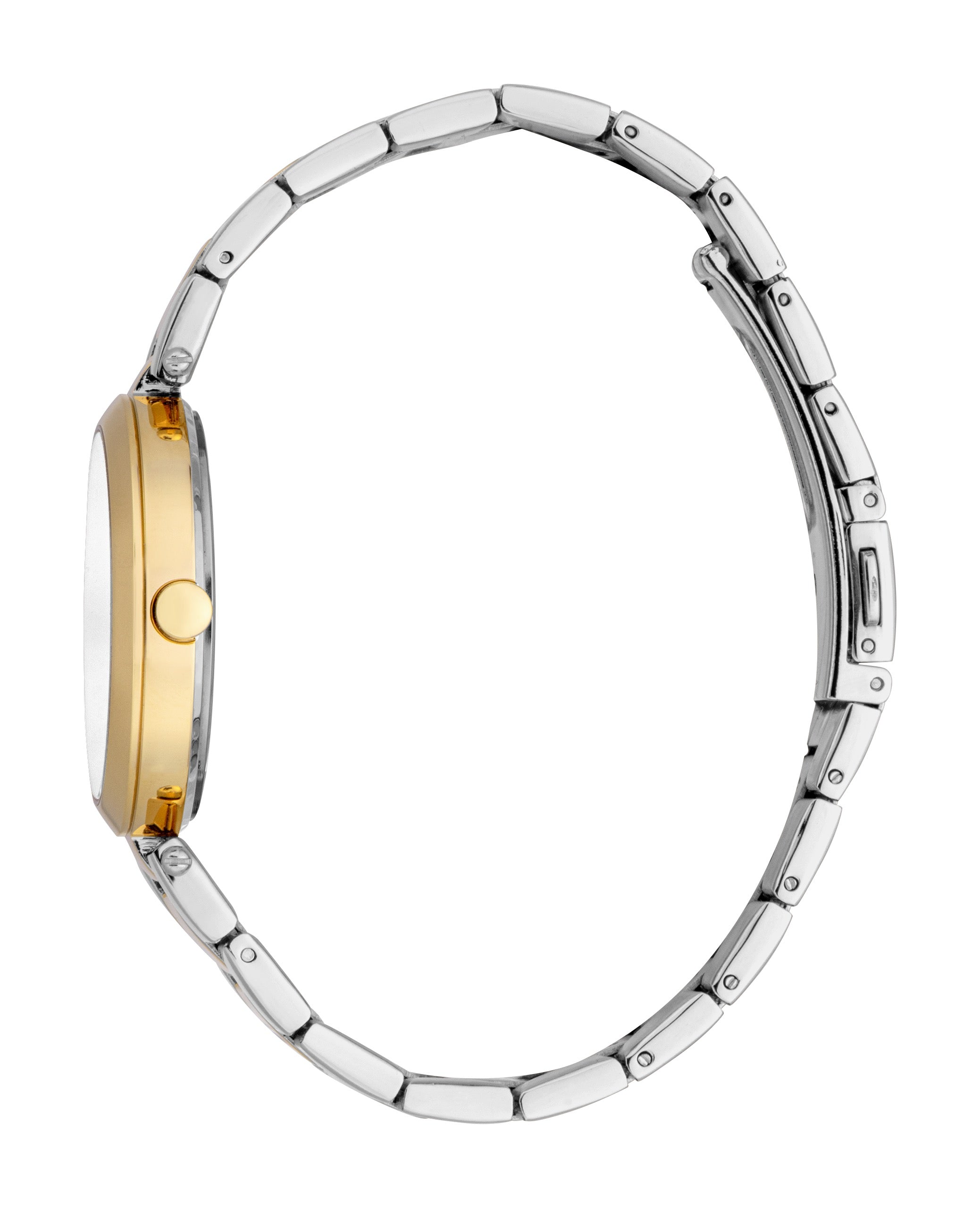 This ESPRIT Women's Two Tone Silver & Gold Watch is perfect for those who want to add a touch of elegance to their look. It features a two-tone silver and gold case and bracelet, with a silver dial and gold-tone hour markers and hands. The reliable quartz movement offers water resistance up to 3 ATM, making it ideal for everyday wear. The metal bracelet is comfortable to wear and secure with a fold-over clasp. This watch is perfect for any fashion-forward woman who appreciates quality and style. It is versatile enough to be worn with any outfit, from casual to dressy, and is sure to become a timeless addition to your wardrobe. Order yours today and enjoy the timeless style and quality that ESPRIT has to offer. SPECIFICATIONS: