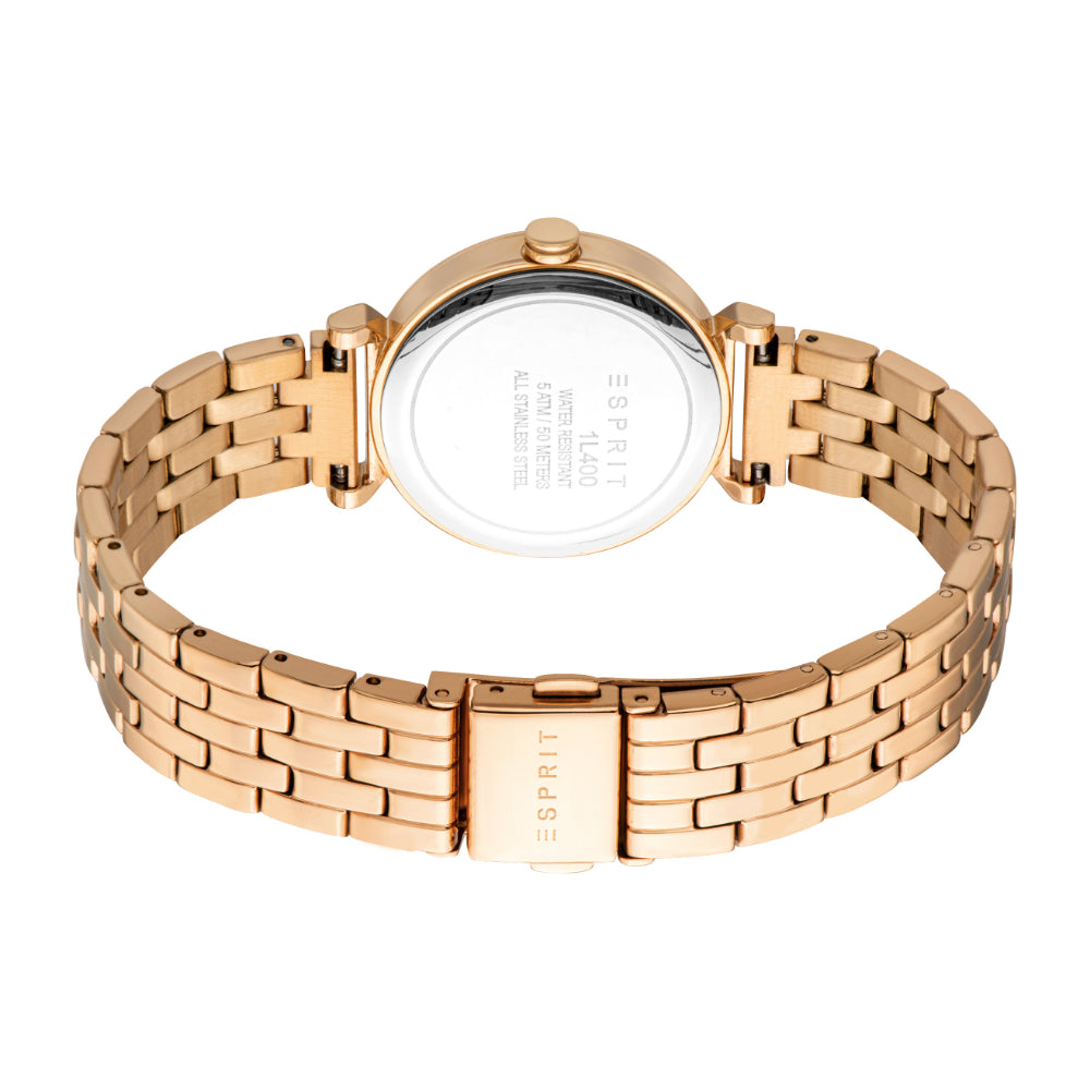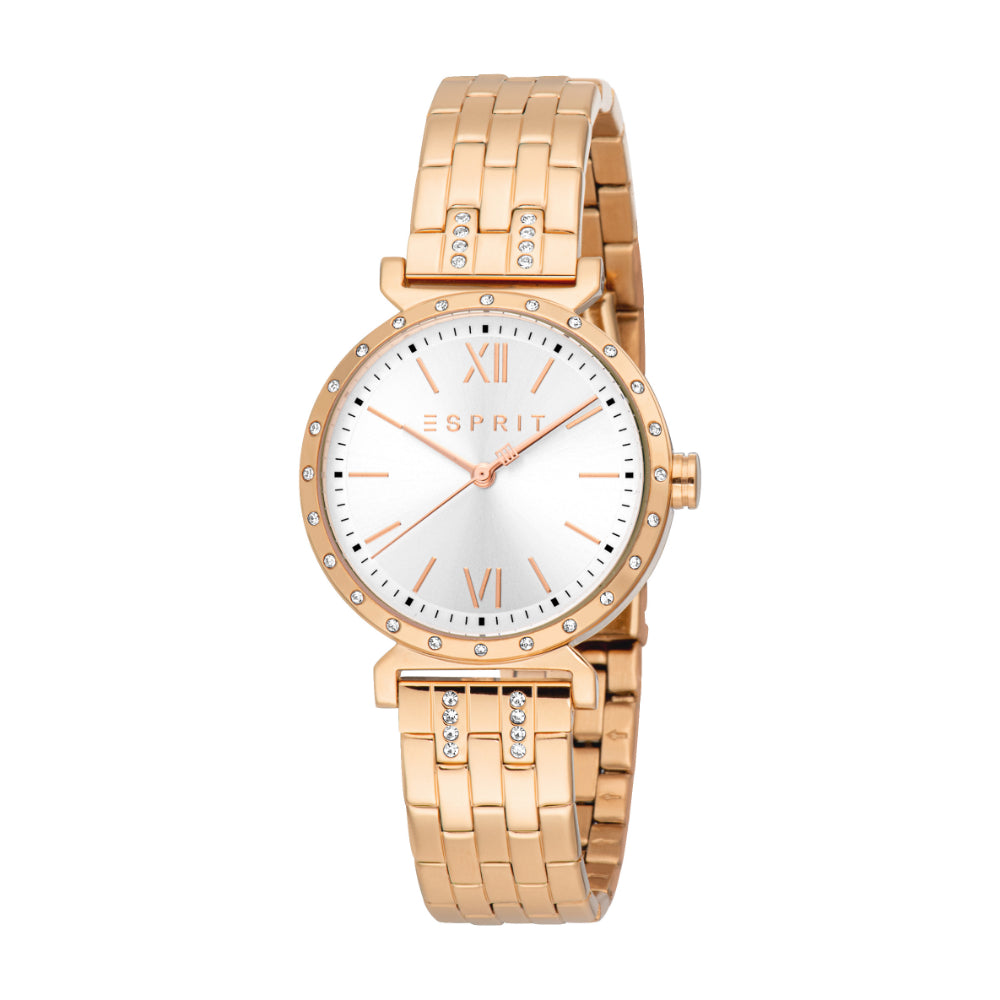 ESPRIT Women Watch, Rose Gold Color Case, Silver Dial, Rose Gold Color Metal Bracelet, 3 Hands, 5 ATM