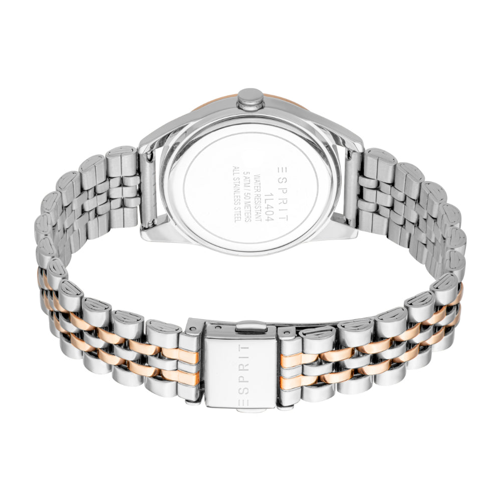 ESPRIT Women's Two Tone Silver & Rose Gold Color Watch with Silver Dial and Metal Bracelet