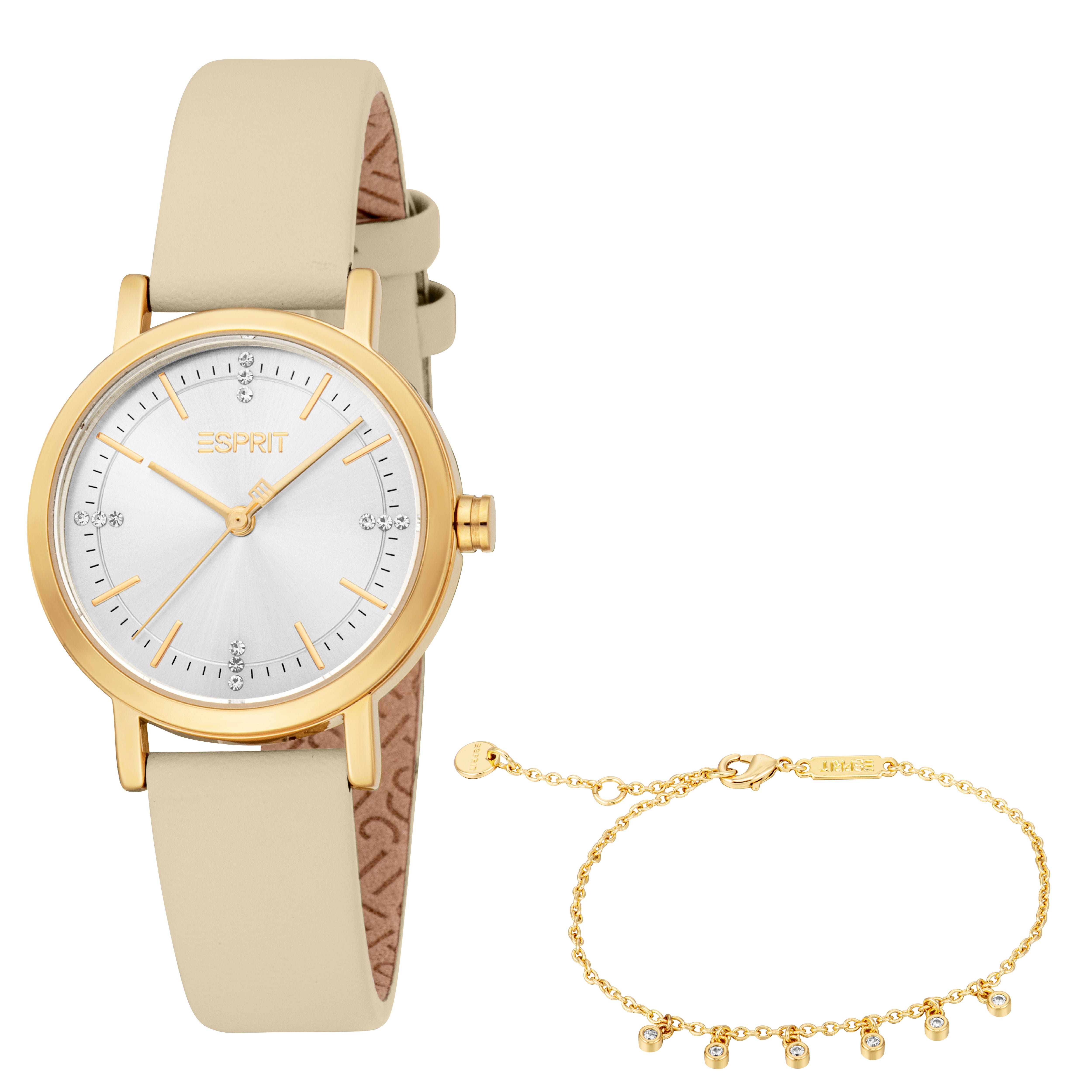 Esprit Women's Gold-Tone Watch with Beige Leather Strap & Matching Bracelet