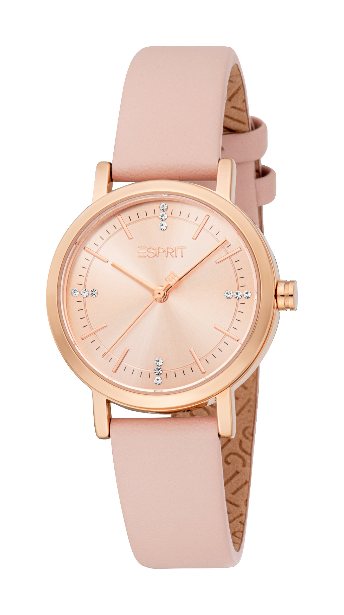 Esprit Women’s Rose Gold Watch & Bracelet Set – Pink Leather Strap 3ATM
