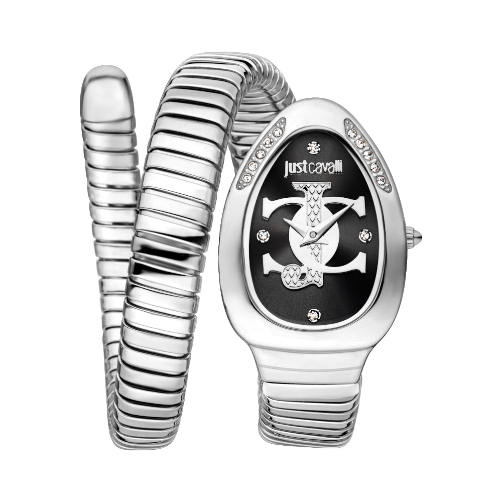 Just Cavalli Snake Shape Women's Silver Watch with Black Dial