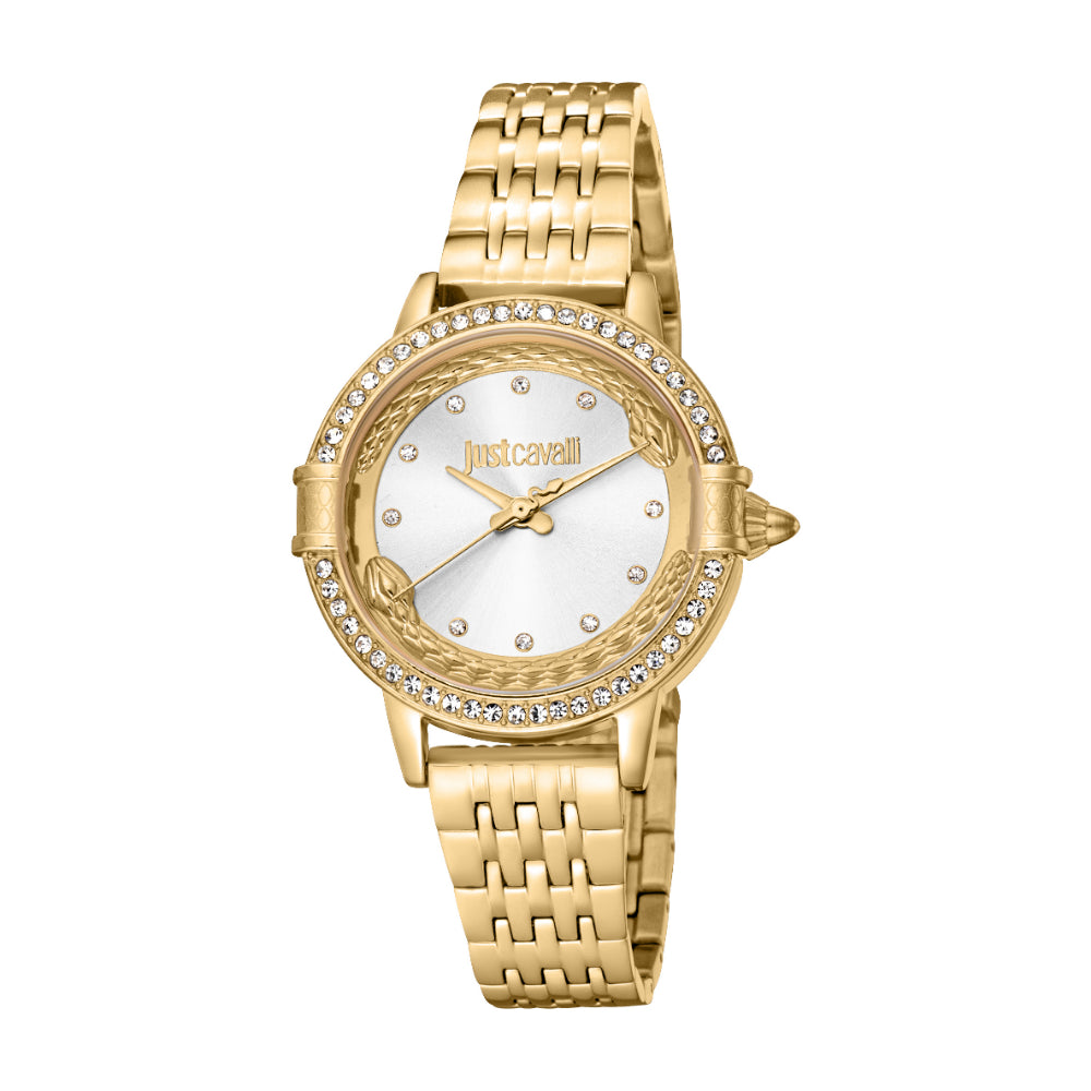 Just Cavalli Women's Gold Color Watch with Silver Dial and Gold Metal Bracelet