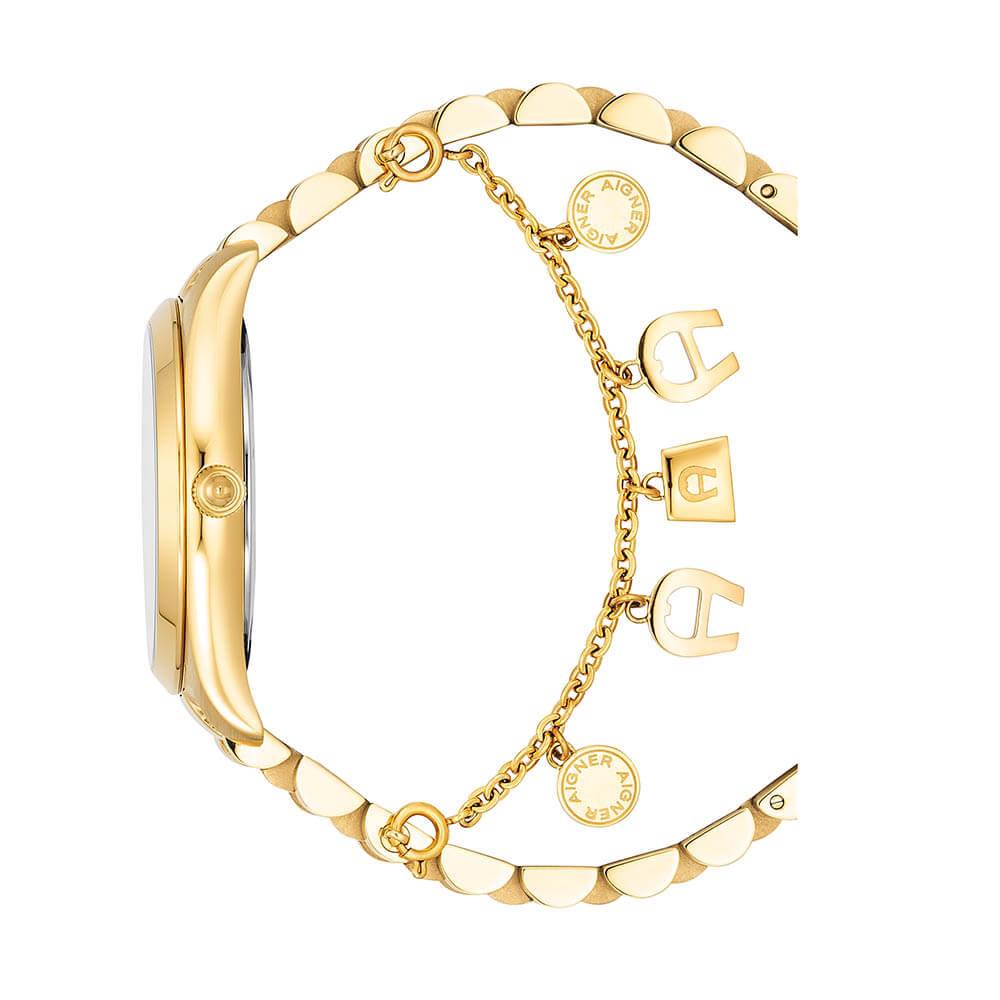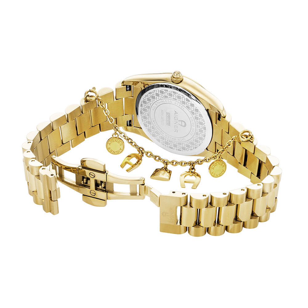 The Aigner Scafati Ladies Green Dial Gold Stainless Steel Watch is a stylish timepiece for women. It features a elegant combination of gold stainless steel and green, making it a perfect accessory for any outfit. The watch is water resistant up to 30 meters, making it suitable for everyday wear. Crafted with precision and quality, this watch is Swiss made, ensuring accuracy and durability. The green dial adds a unique touch to the design, while the gold stainless steel strap provides a luxurious finish. Whether you're dressing up for a formal occasion or going about your day-to-day routine, the Aigner Scafati Ladies Green Dial Gold Stainless Steel Watch is a versatile and eye-catching choice. Its superior craftsmanship and stylish design make it a perfect blend of functionality and fashion.