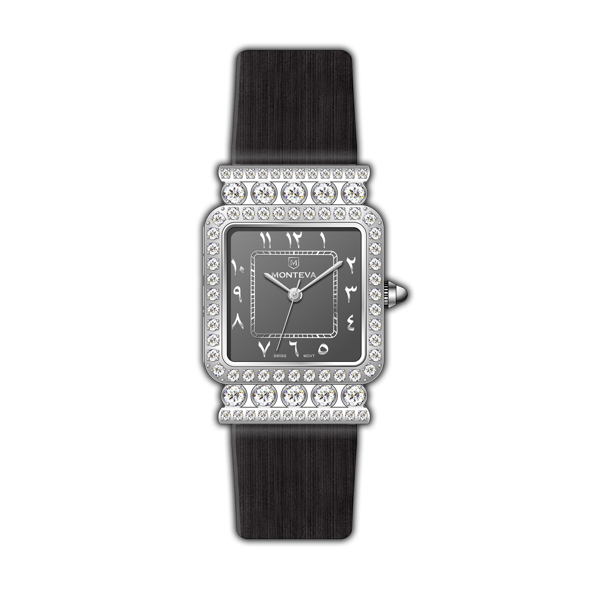 Make a sophisticated statement with the MONTEVA Chic Odim Ladies Watch (M479ASG). This elegant timepiece features a captivating grey dial with distinctive Arabic numerals, framed by a dazzling crystal-studded bezel and a sleek silver-tone case. Paired with a comfortable black leather strap, it's a perfect blend of modern design and cultural charm.