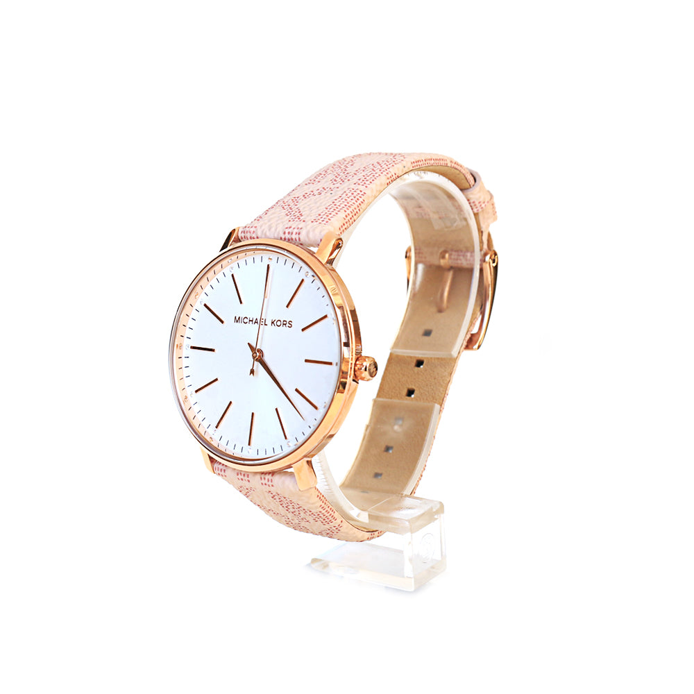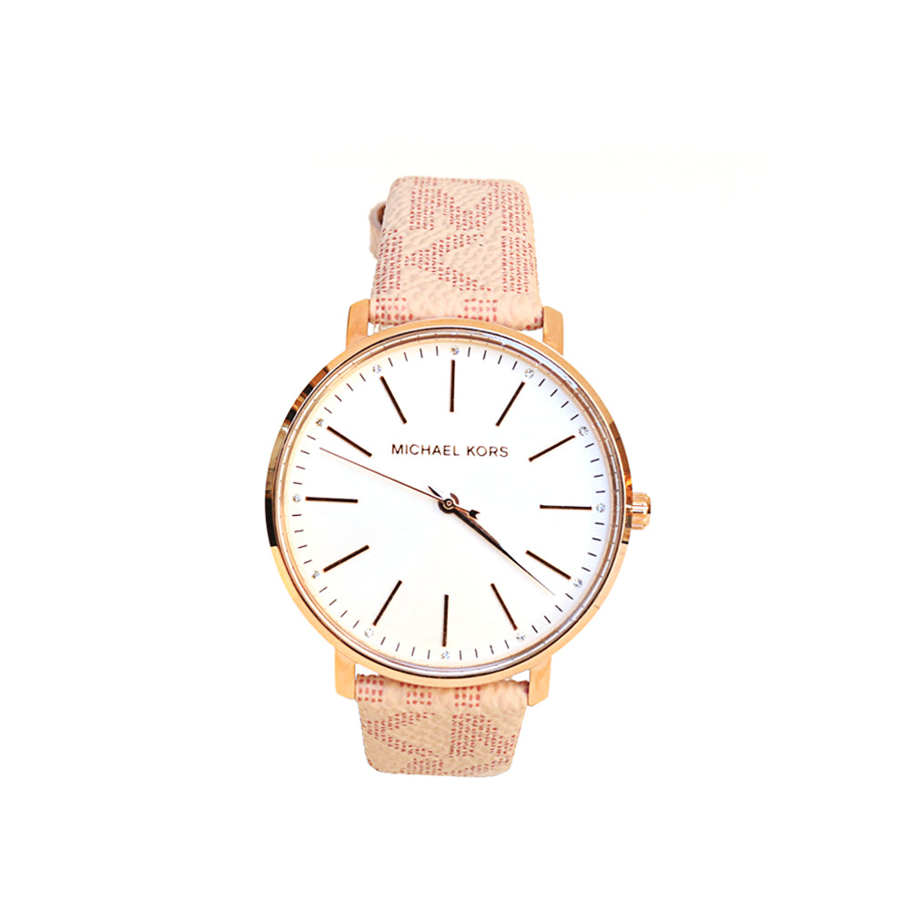 ساعة مايكل كورس نسائي من الستيل مطلي باللونالذهبي على سوار من السيليكون
