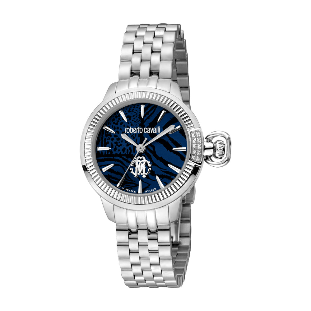 Roberto Cavalli by Franck Muller Women's Watch, Silver Case and Dark Blue Dial