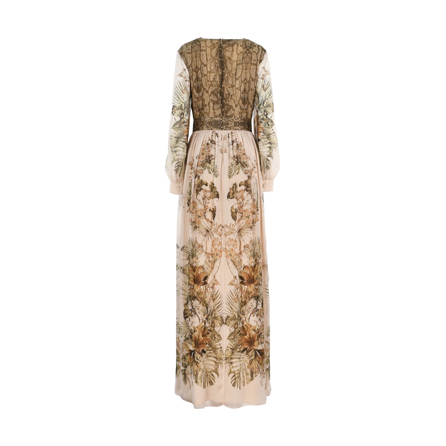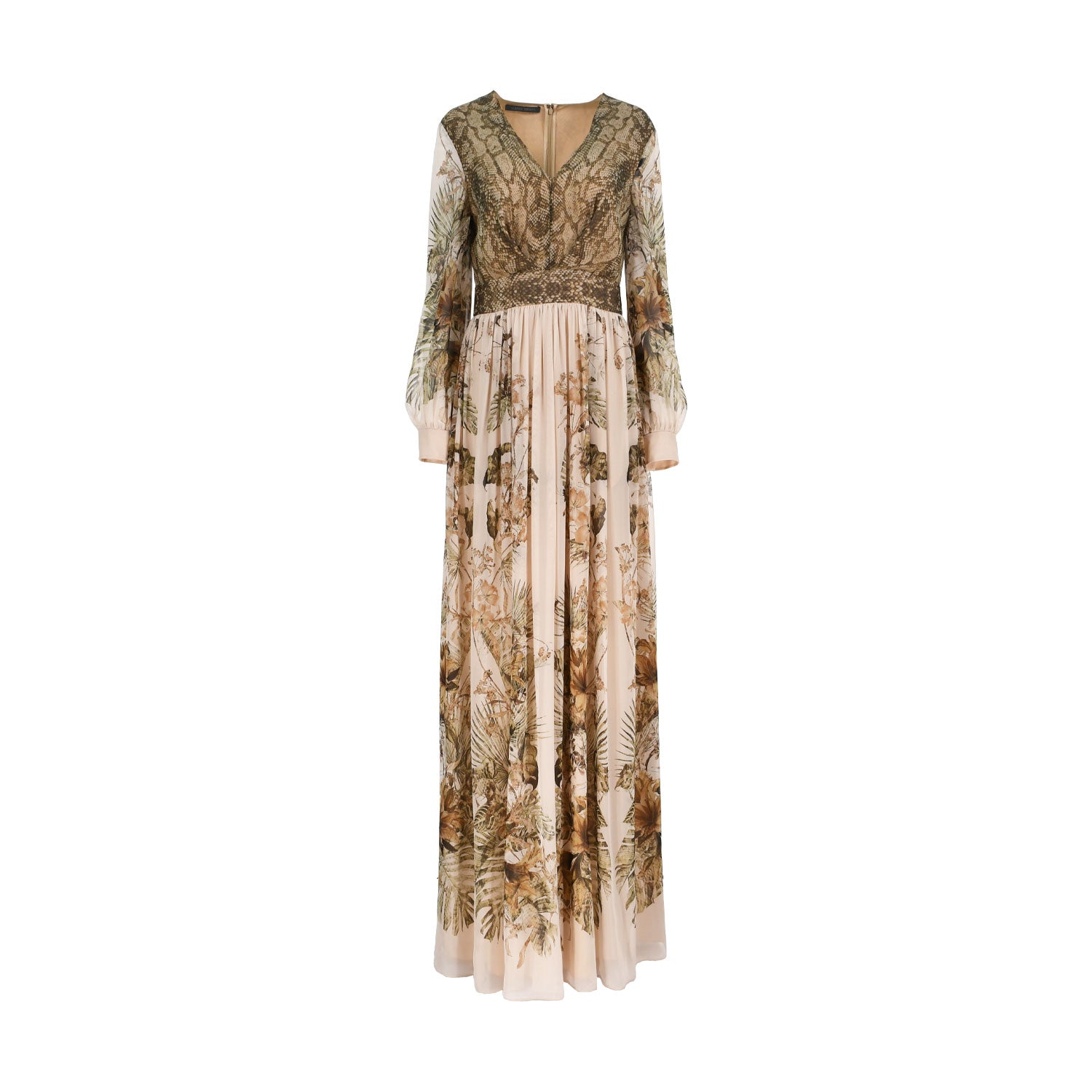 Alberta Ferretti Floral and Snake Print Silk Long Dress