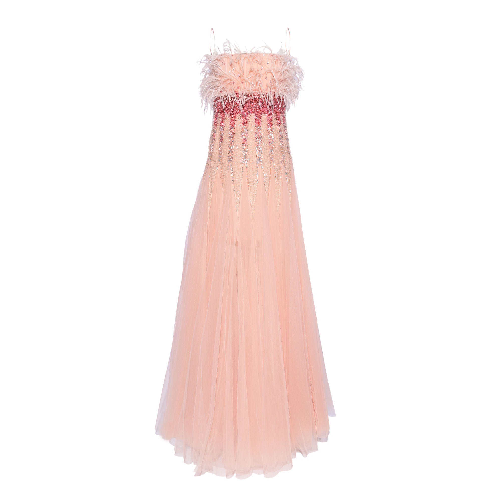 | Supria Munjal's most recent tulle gown in peach color has received a lot of attention for its sophisticated and fashionable appearance. It has been expertly stitched to improve your overall look. This dress has straps and it comes with feather on chest and back embellished with sequins work ,it has back zipper closure. The versatility of this dress is enhanced by its stitch design and flared hemline.It's a perfect fit that gives the wearer a sophisticated look. SPECIFICATIONS :