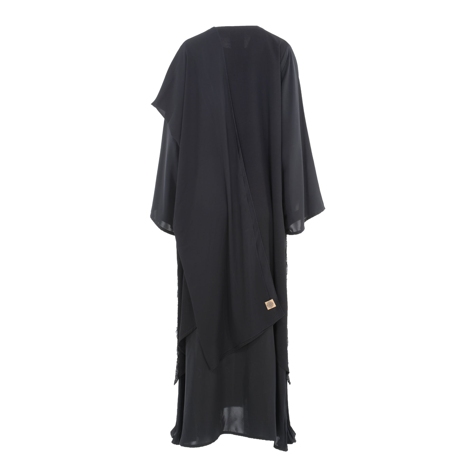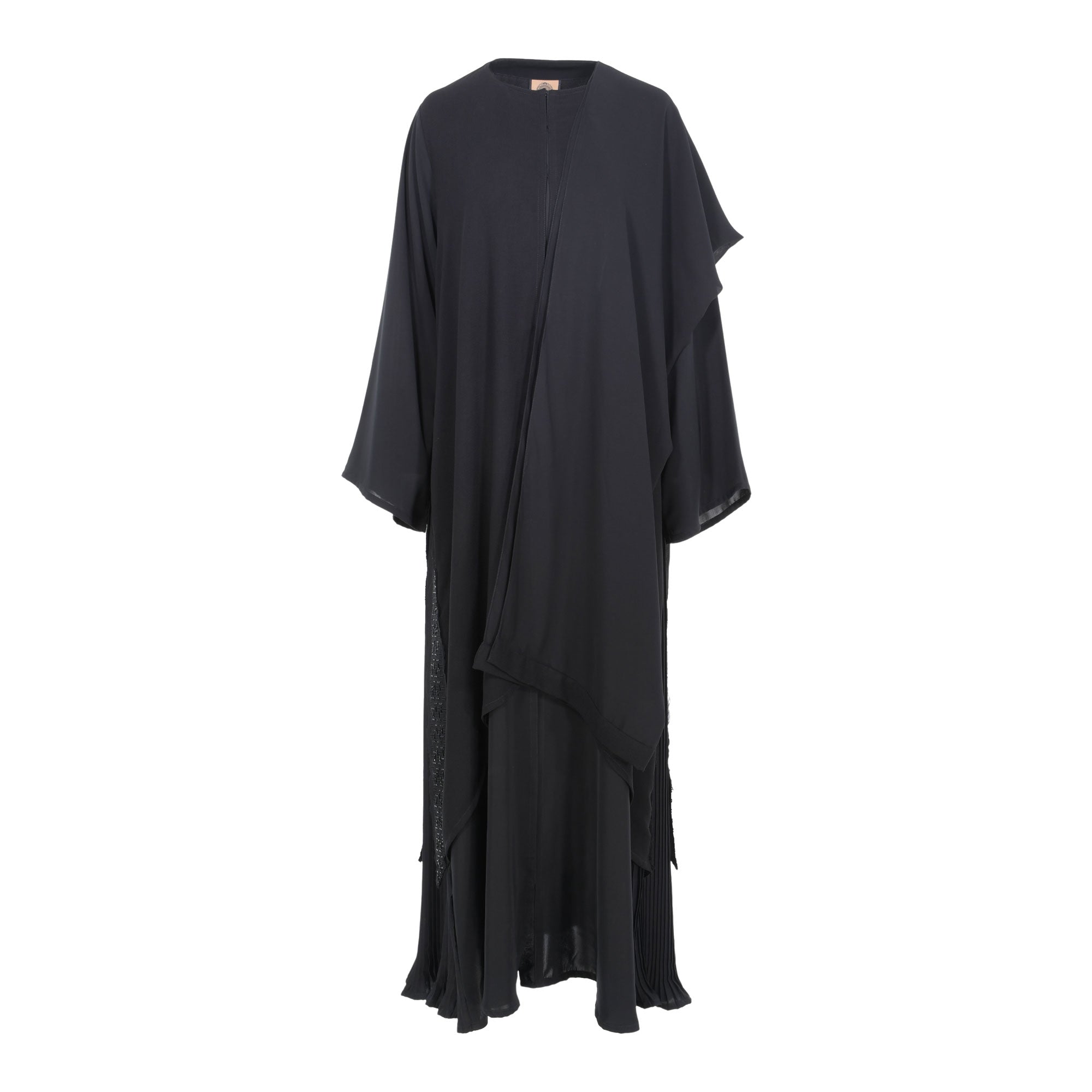 | The Nero Fashion Black layered Abaya is the perfect way to make a fashion statement this season. This stylish abaya features a free size fit with long, loose sleeves and round neck style. The sides of abaya embellished with sequins embroidery and pleated style adds a unique touch. The snap buttons at the front make it convenient to style this as both an Open Abaya Robe, and a Closed Abaya Look . This abaya is perfect for any occasion, from formal events to casual days out. Not only is it comfortable and stylish, but it also makes a great statement piece that will turn heads wherever you go. SPECIFICATIONS :