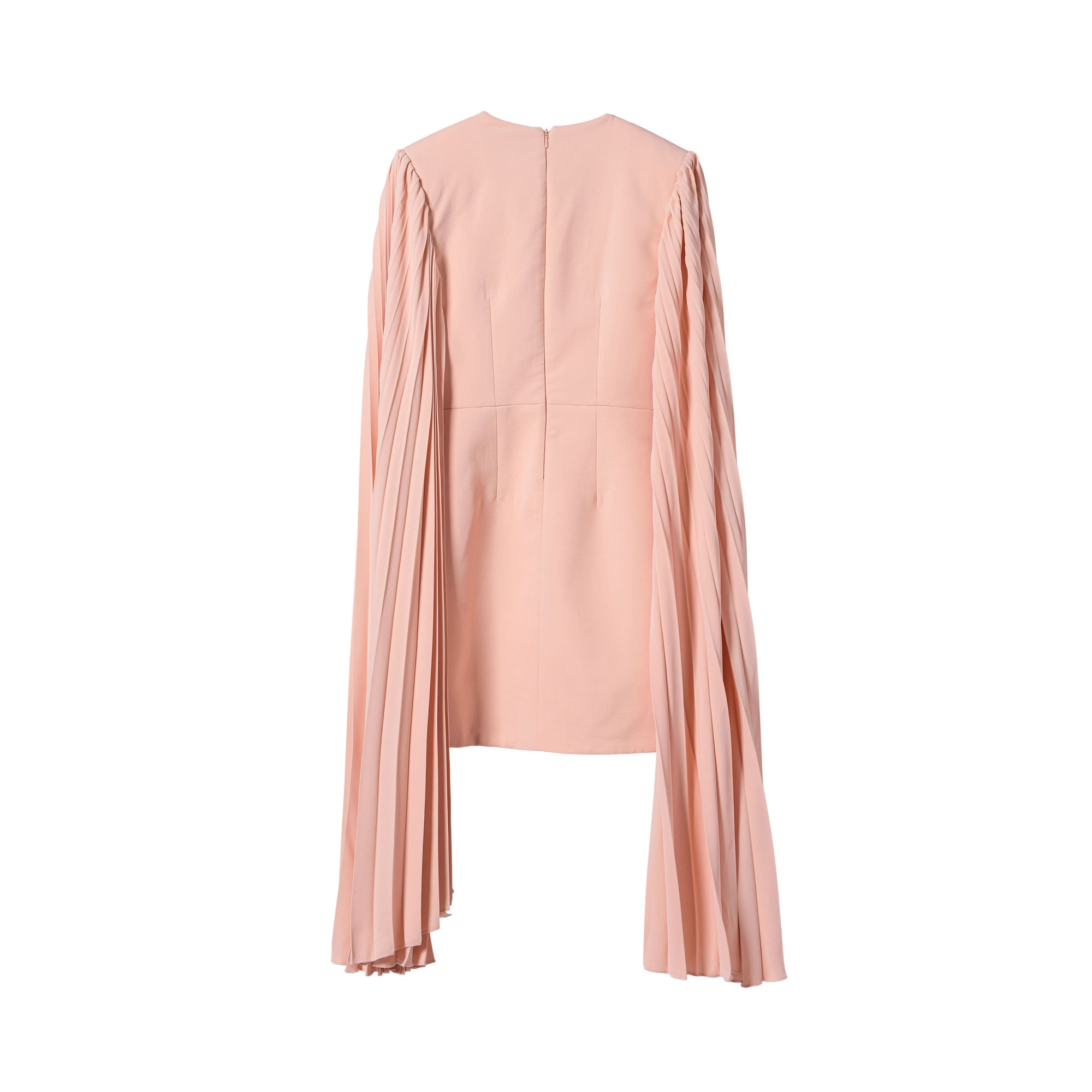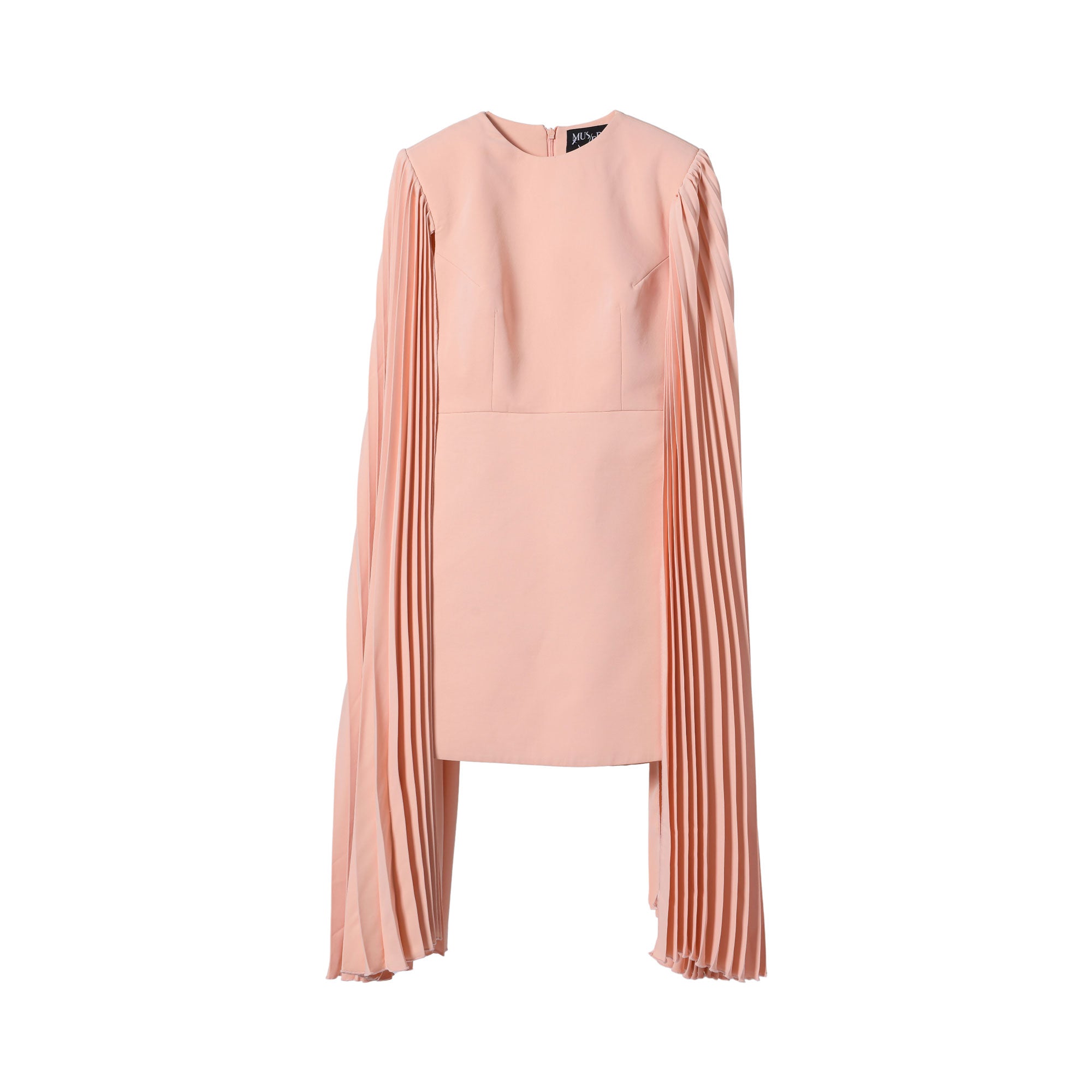 The Mused Boutique Women's Peach Dress is a stylish and versatile piece that is sure to turn heads. It features a classic round neck which is flattering for most body types. The dress is designed to be a short length, making it perfect for both casual and formal occasions. The pleated long sleeves add a touch of sophistication and elegance to the dress. The concealed zip fastening at the back ensures a seamless and polished look. The peach color is feminine and eye-catching, adding a pop of color to your wardrobe. This dress is perfect for any fashion-forward woman looking to make a statement with her outfit. SPECIFICATIONS