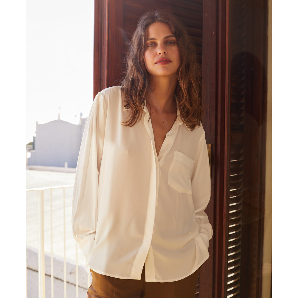 The Momoni Boulder Shirt is a must-have for any wardrobe. This timeless design features a generous inverted pleats on the sleeves which give the Boulder an unmistakable silhouette. The fabric is a light crepe-silk blend and has a fluid regular fit. The shirt features a small breast pocket for convenience and has a concealed button fastening for a neat, sharp finish. The collar neck and long sleeves complete the look, making this shirt perfect for any occasion, be it formal or casual. With its intricate detail and timeless design, the Momoni Boulder Shirt is an invaluable addition to any wardrobe. SPECIFICATIONS:
