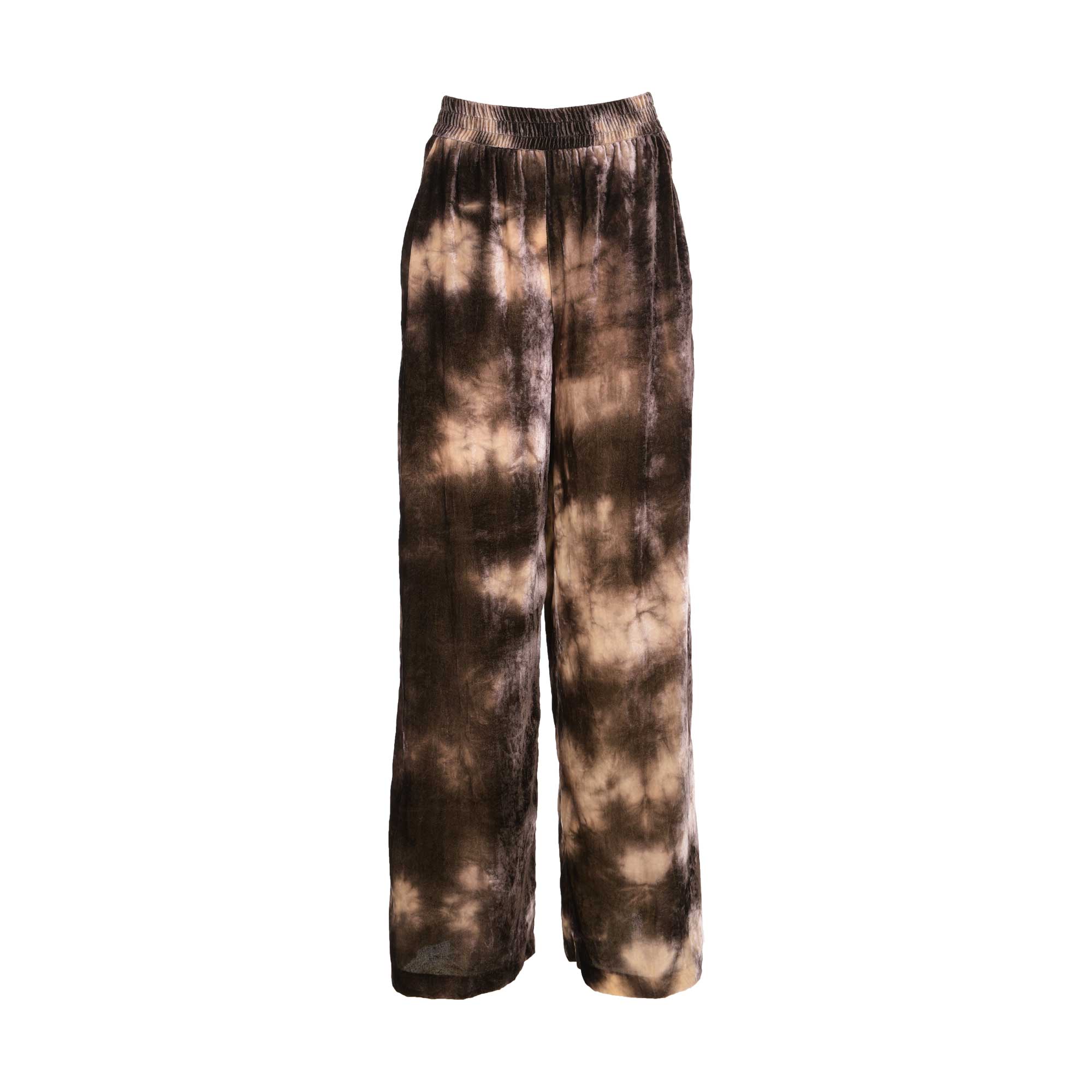 These straight-legged viscose satin pants by Sfizio are both contemporary and adaptable thanks to the value-adding hand-bad-dying method used in their production.