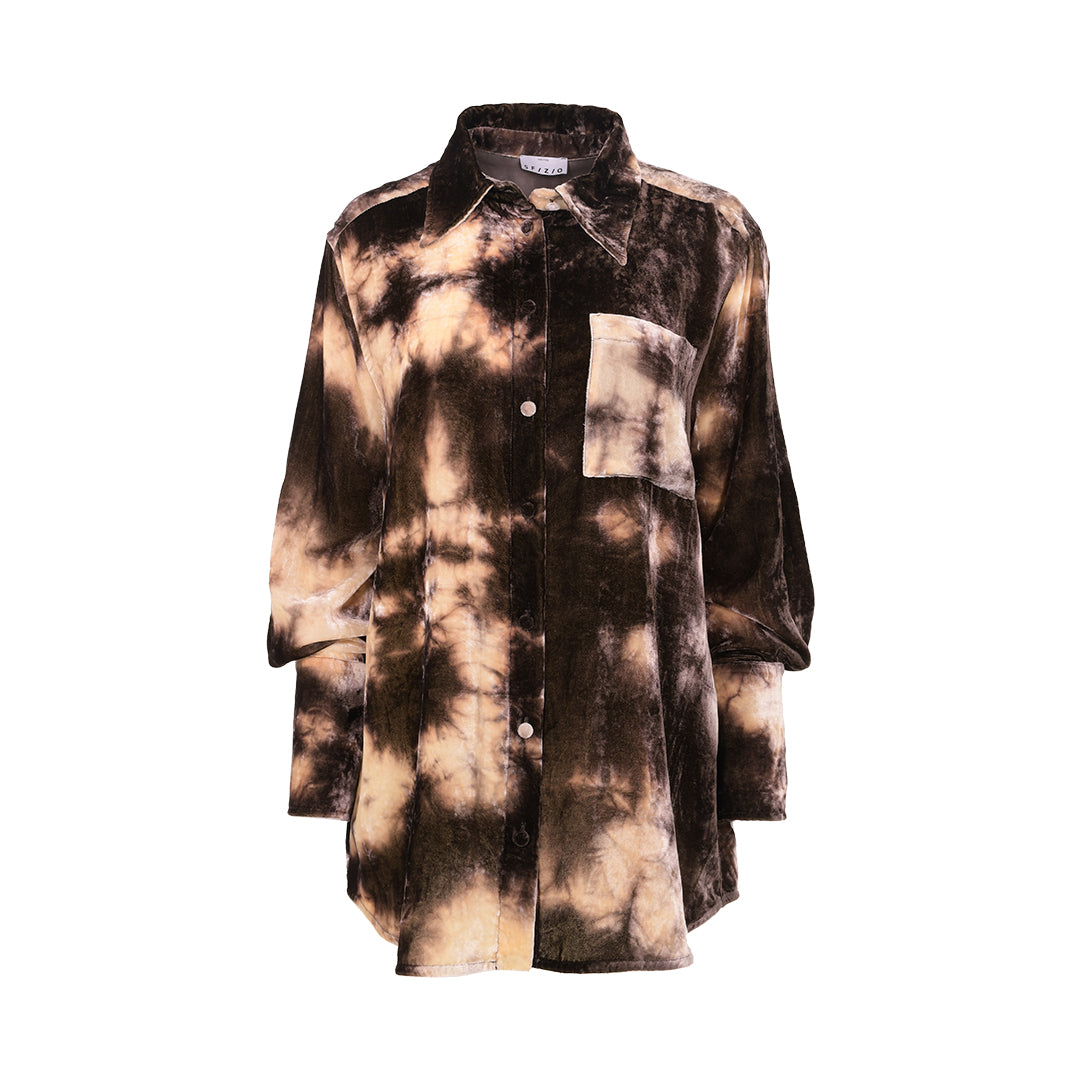 | The viscose fabric offers a soft and smooth feel, making it comfortable to wear. The fabric is also lightweight, allowing for a comfortable fit.The blouse is designed with a handcrafted bad-dying effect, making it stand out from other clothing. The bad-dyeing technique creates depth and texture and the colors are achieved through a special dyeing process. The front button closure makes it easy to put on and take off, and the long sleeves with pocket on chest add a stylish detail.This Sfizio blouse is ideal for any event, from casual gatherings to formal occasions. It can easily be dressed up with trousers and heels, or kept casual with jeans and sneakers. It is a versatile piece that is sure to make a statement. SPECIFICATIONS :