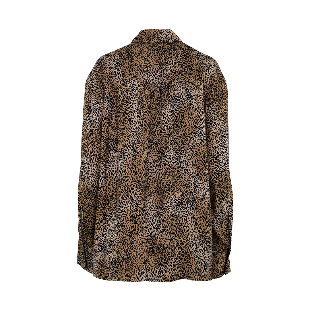 | This heavy satin viscose shirt by Sfizio features a Graphic Skin print, making it a stylish and contemporary choice for women. It has a standard collar, a front with a concealed button arrangement, long sleeves with dropped shoulders, and side splits at the hem. SPECIFICATIONS :