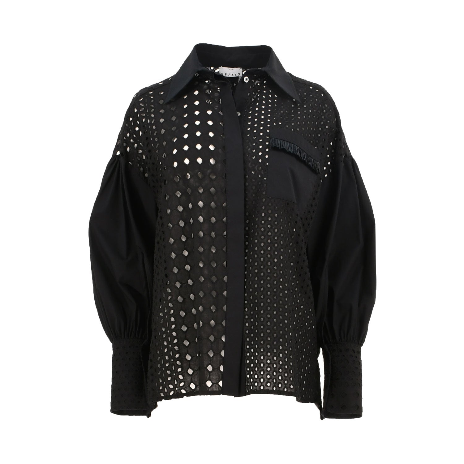 | The Sfizio Women's shirt in black is a timeless classic. Crafted from a lightweight fabric, this shirt features dainty broderie anglaise detailing for a delicate and feminine look. The collar neck and long balloon sleeves create a flattering silhouette, while the front button closure adds a classic touch. Wear this versatile shirt with a pair of jeans for a casual look, or dress it up with a skirt for a more formal occasion. Whatever the occasion, you'll be sure to look and feel fabulous in this stylish shirt. SPECIFICATIONS :
