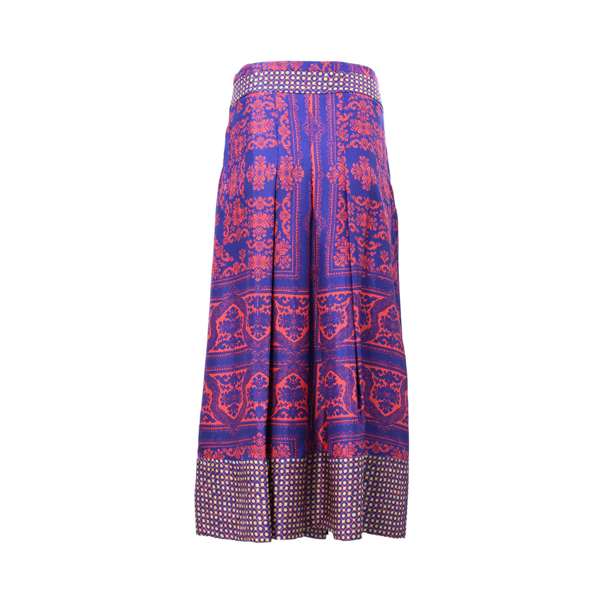 The Momoni Women's Long Skirt is the epitome of elegance and sophistication. Made in Italy, this skirt is crafted from pure silk twill and features a waistband and flounced hem in a contrasting print. The box pleats on the back and front give the skirt a structured and feminine silhouette. With its slant pockets and side zip, this skirt is not only stylish but also functional, making it the perfect choice for any occasion. The printed design adds a touch of playfulness and charm to the overall look of the skirt. Whether paired with a simple blouse for a daytime look or a sleek top for a night out, the Momoni Women's Long Skirt is sure to make a statement. Its versatile design allows for endless styling options, making it a must-have for any fashion-forward woman's wardrobe. Invest in this beautifully crafted piece and elevate your wardrobe with the timeless and chic style of Momoni. Experience the luxury of wearing a skirt that is not only made with high-quality materials but also with impeccable Italian craftsmanship. Embrace your femininity and grace with the Momoni Women's Long Skirt. SPECIFICATIONS
