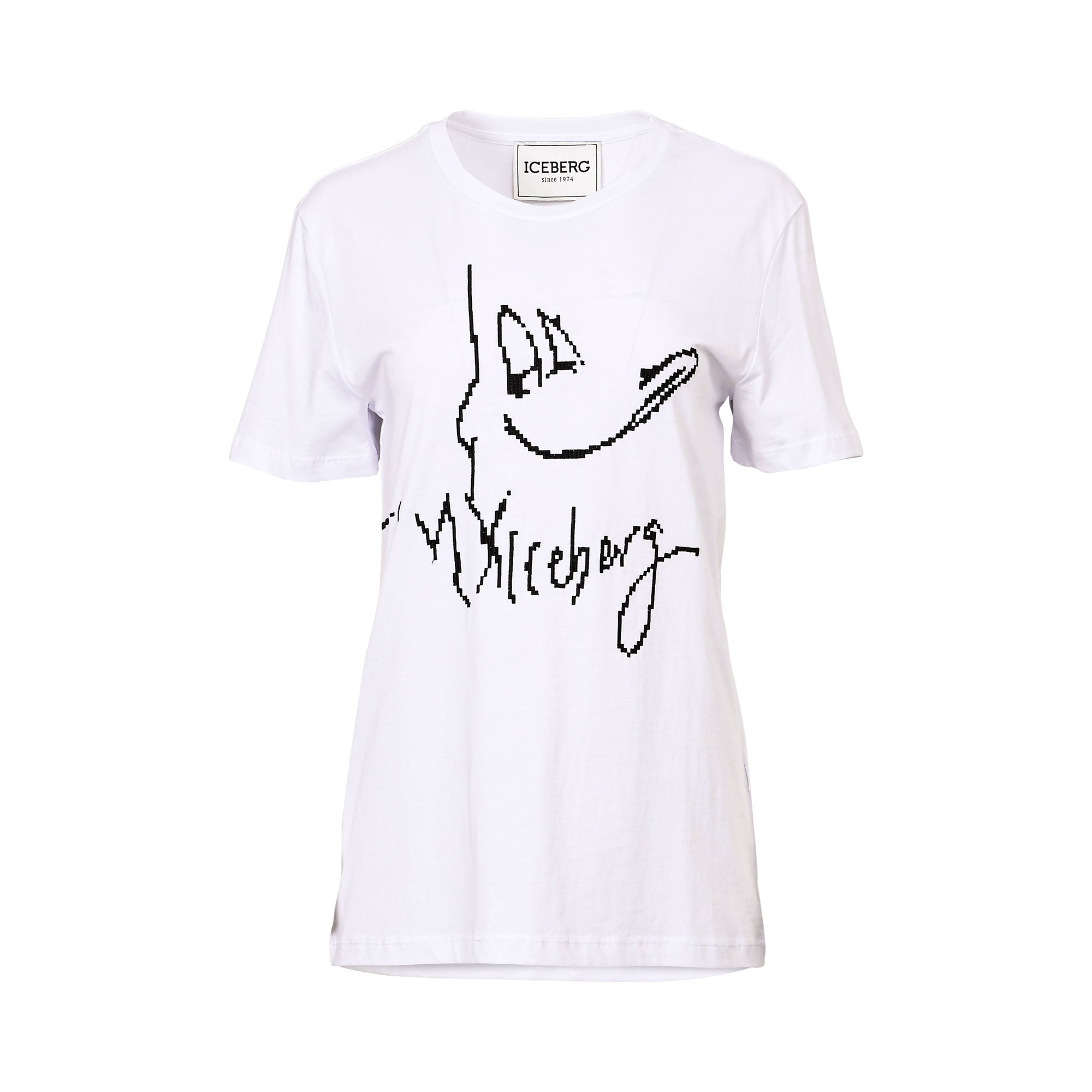 Iceberg Women's White Crew Neck T-Shirt with Cartoon Character and Signature Graphic