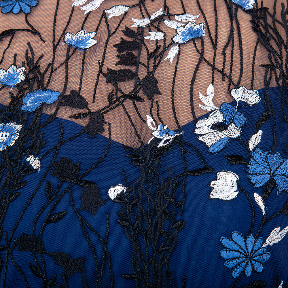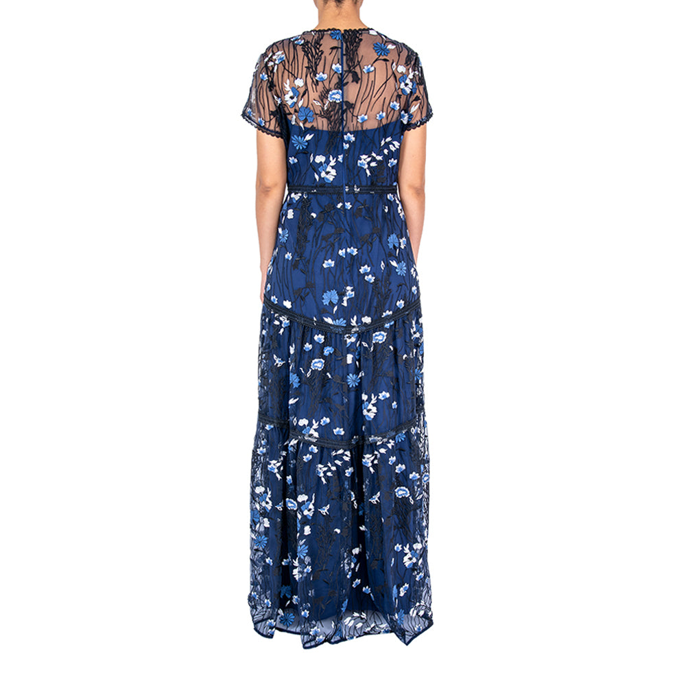 Ml By Monique Lhuillier Floral Embroidered A-Line Gown In Navy Multi
