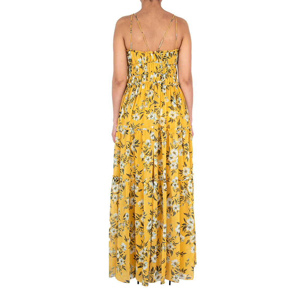 If you're looking for the perfect dress to make a statement at your next special event, the Monique Lhuillier Sleeveless Chiffon Long Dress is sure to turn heads. In a stunning floral gold ochre, the airy chiffon blend fabric of this dress gives it a light, ethereal feel. The sweetheart neckline is adorned with double spaghetti straps that criss-cross at the back for extra detail. The gathered bodice and waistline give the dress structure and shape, creating a beautiful silhouette that is sure to flatter any figure. The dress falls to a cocktail length, with the gathered waist emphasizing the shape. To top it all off, the dress features a hidden center back zipper, making it easy to slip into. Whether for a dinner, party, or red-carpet event, this dress is sure to make you look and feel your best.
