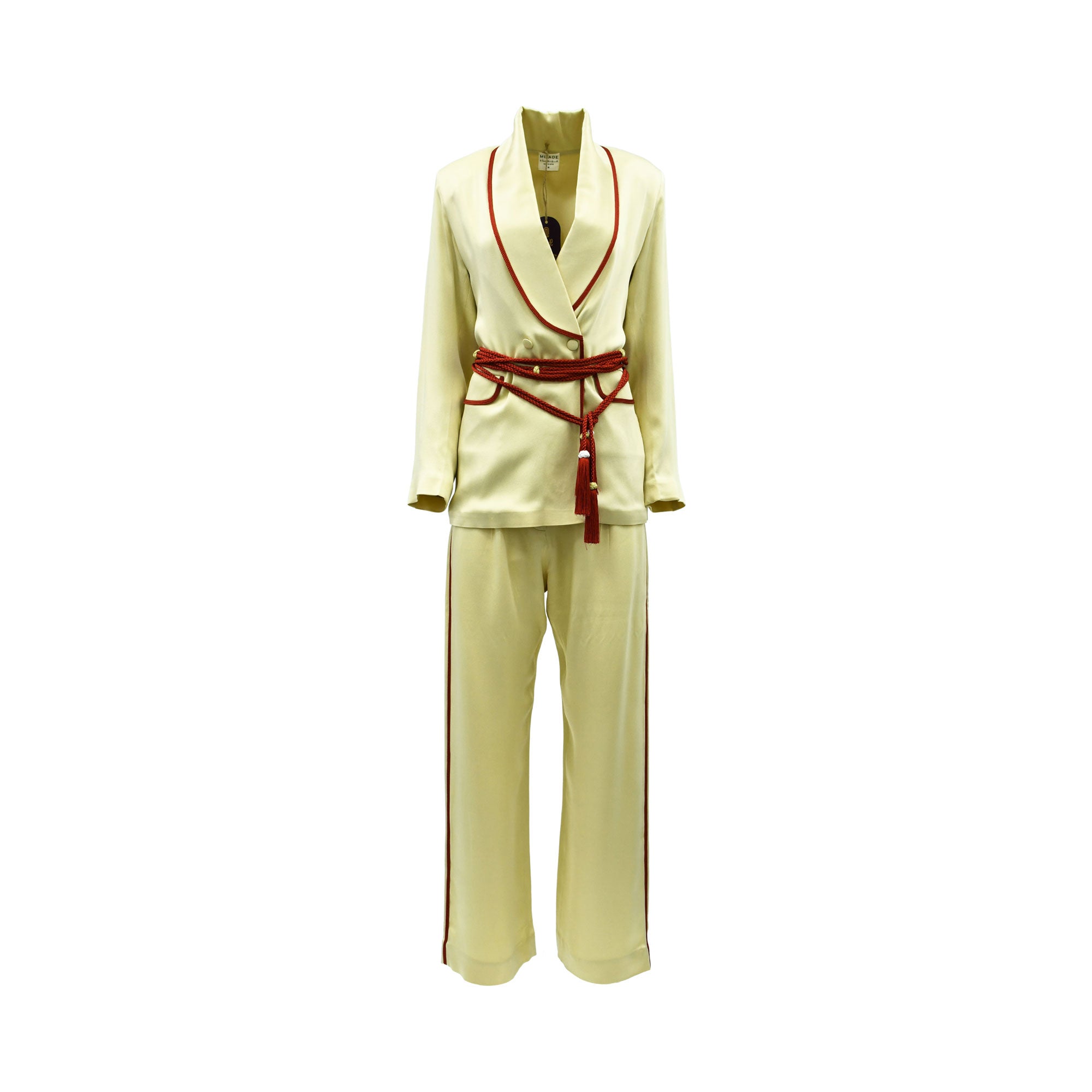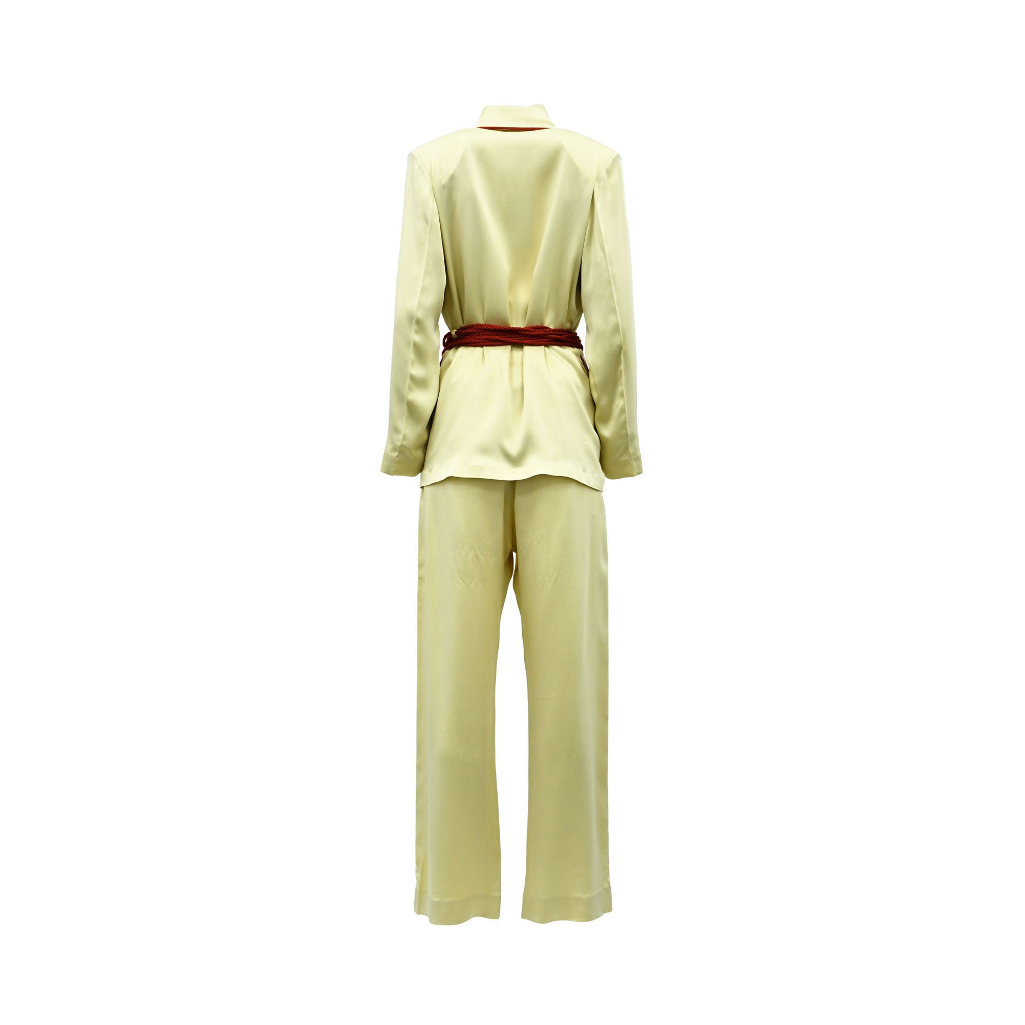 The Mijade Fashion Women's Light Gold Blazer & Trouser is a stylish and sophisticated ensemble for fashion-forward women. Made with a light gold fabric, this blazer and trouser set is perfect for formal events or adding a touch of glamour to your everyday look. One of the standout features of this set is the red piping detailing, which adds a pop of color and draws attention to the sleek silhouette. The blazer also comes with front pockets, providing functionality while maintaining a clean and polished look. To cinch the waist and add an extra touch of elegance, the blazer is accompanied by a red belt with a tassel. This not only accentuates the waist but also adds a playful and trendy element to the outfit. The trousers are equally stylish with a slim fit and subtle pleating for added structure. The red piping detailing is also present along the side seams, providing a cohesive look when worn with the blazer. The Mijade Fashion Women's Light Gold Blazer & Trouser is a must-have for any fashion-forward woman looking to add a touch of sophistication and glamour to her wardrobe. With its unique accents and impeccable tailoring, it's the perfect choice for any occasion. SPECIFICATIONS