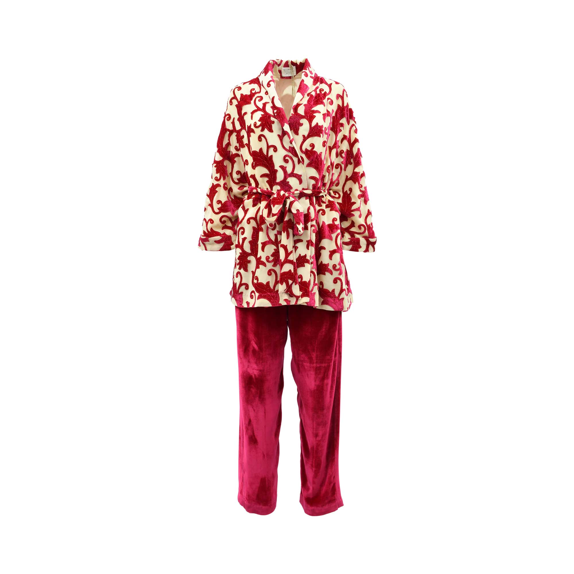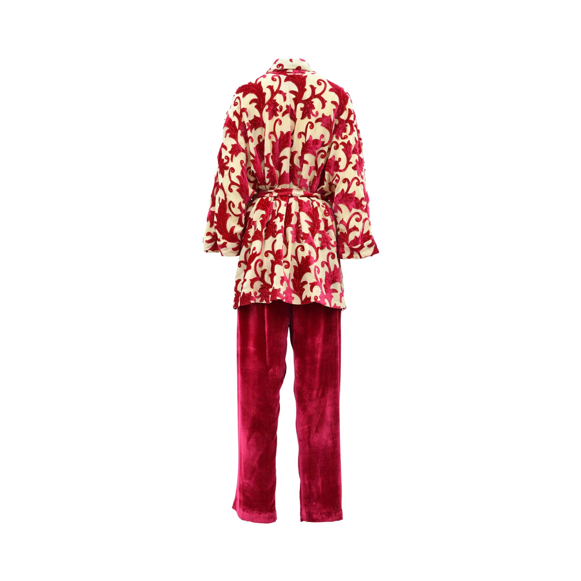 The Mijade Fashion Women's Red & Off-white Blazer & Trouser is a stylish and sophisticated outfit option for women. The blazer and trousers come in a bold red and off-white color combination, making it a statement piece. The blazer has long sleeves, adding a touch of elegance to the outfit. It also features a matching belt fastening, giving the wearer the option of cinching in their waist for a more fitted look. The use of velvet fabric adds a luxurious element to the outfit, making it perfect for dressier occasions. The blazer and trousers can also be worn separately, making it a versatile addition to any wardrobe. The overall design is chic and modern, making it a must-have for fashion-forward women. Whether for a formal event or a day at the office, the Mijade Fashion Women's Red & Off-white Blazer & Trouser is a perfect choice for those looking to make a bold fashion statement. SPECIFICATIONS