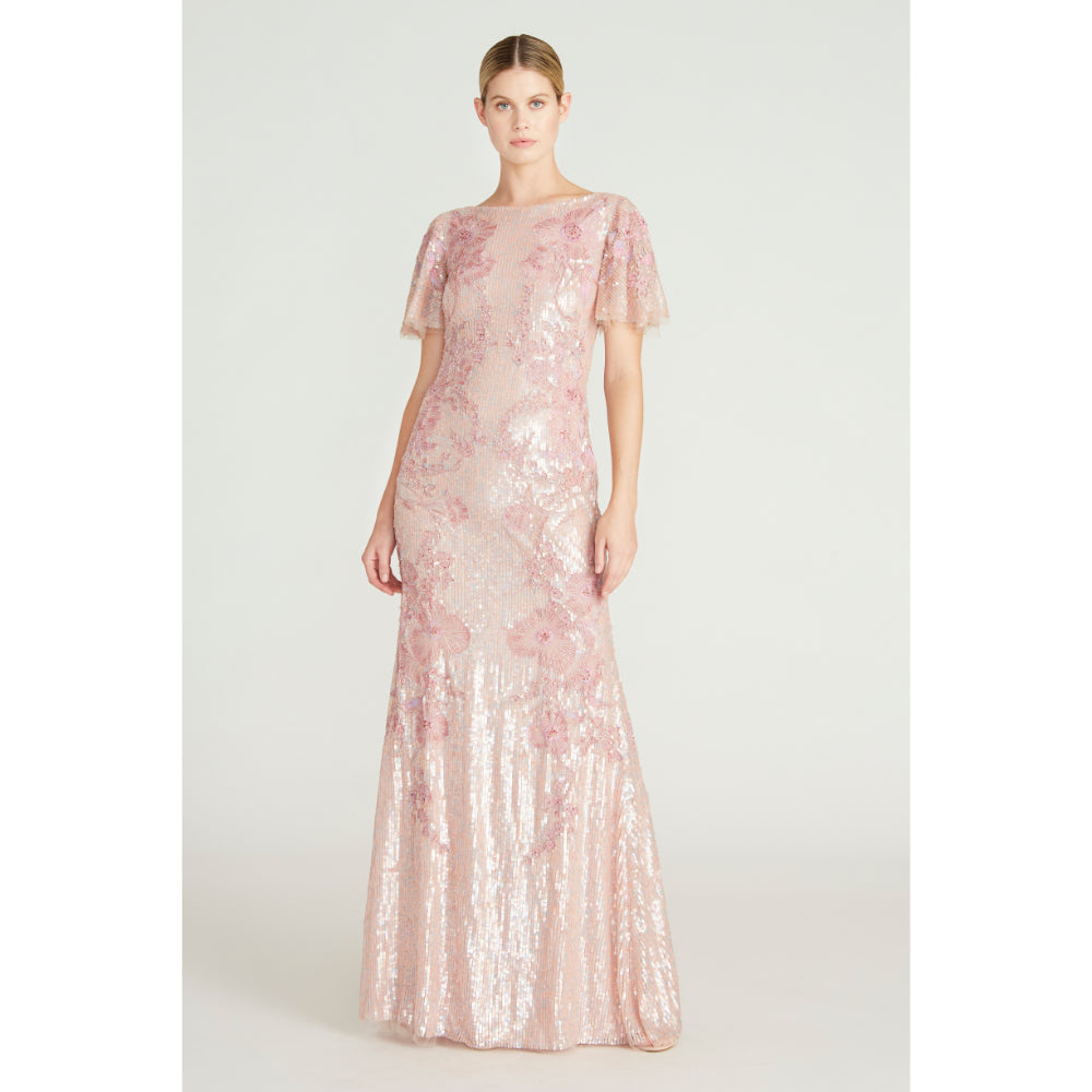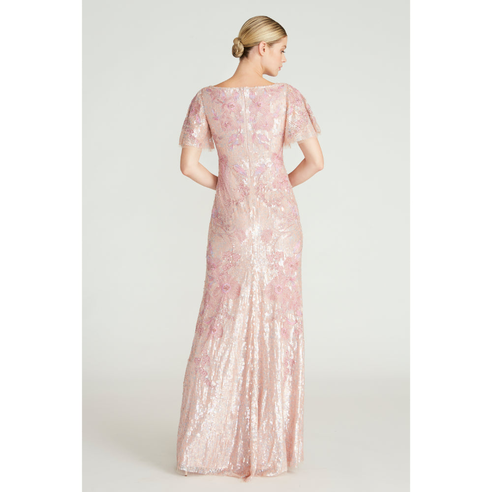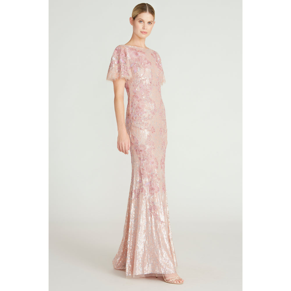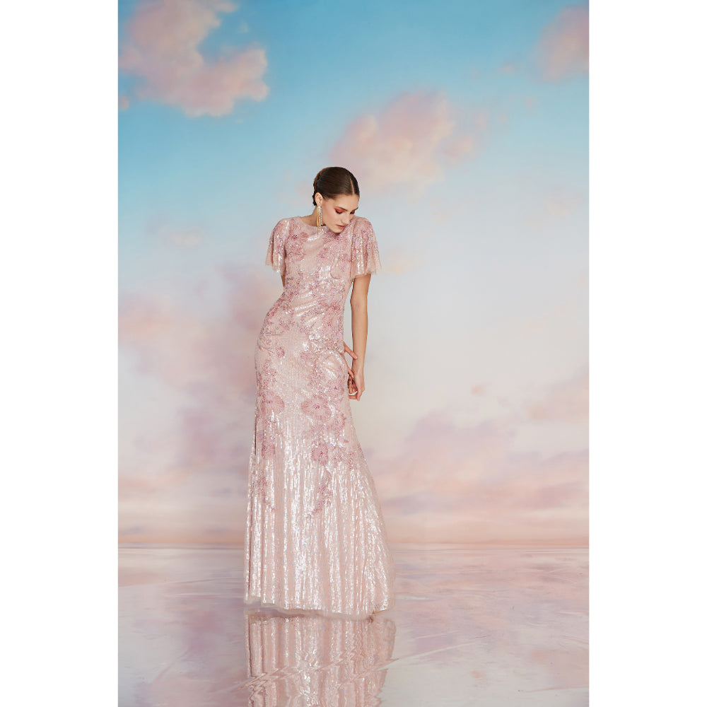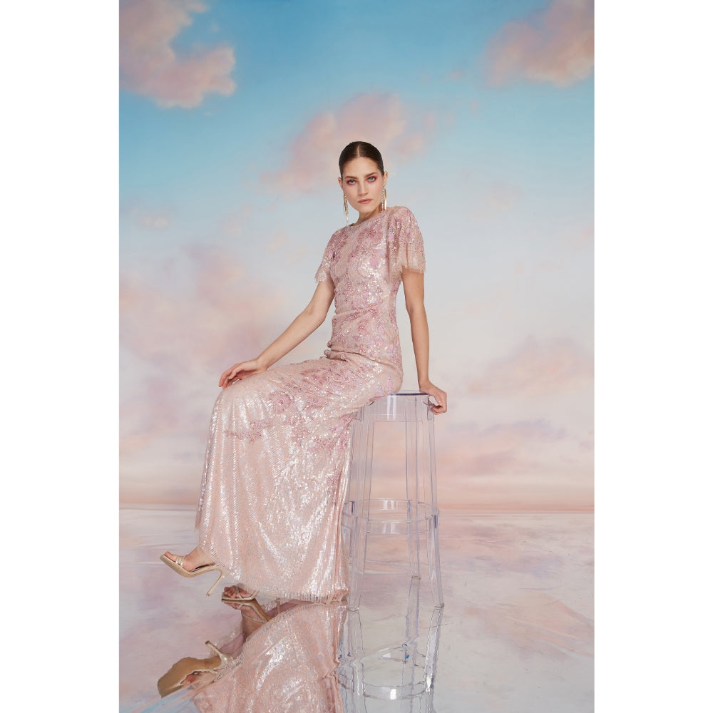 The Katya evening gown is the perfect combination of elegance and sophistication. Cut in blush tulle and adorned with floral beading and shimmering sequins, this stunning gown is sure to make a statement at any special occasion. The flutter sleeves and full skirt cut of the gown provide a beautiful silhouette, while the all-over beading adds a touch of sparkle. The lining provides added comfort and the back zipper closure ensures an effortless fit. With its beautiful sparkling sequin lilacs, this Theia Beaded Gown is sure to bring out your inner femme fatale and is sure to make heads turn. Crafted in 100% nylon, it is perfect for any special event or formal occasion.