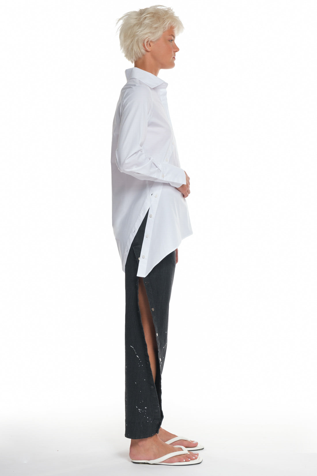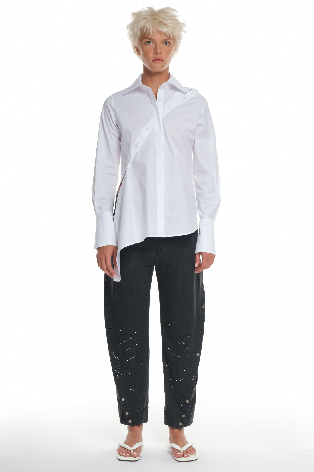 | The latest Balossa shirt is the talk of the town for its sophistication and style. It's expertly stitched to enhance your appearance. It's all white with button design across the chest with cuffed long sleeves and secured with side buttons. It can open from one shoulder .The shirt's collared neck makes it versatile; wear it with pants or a skirt to round out your ensemble. SPECIFICATIONS :